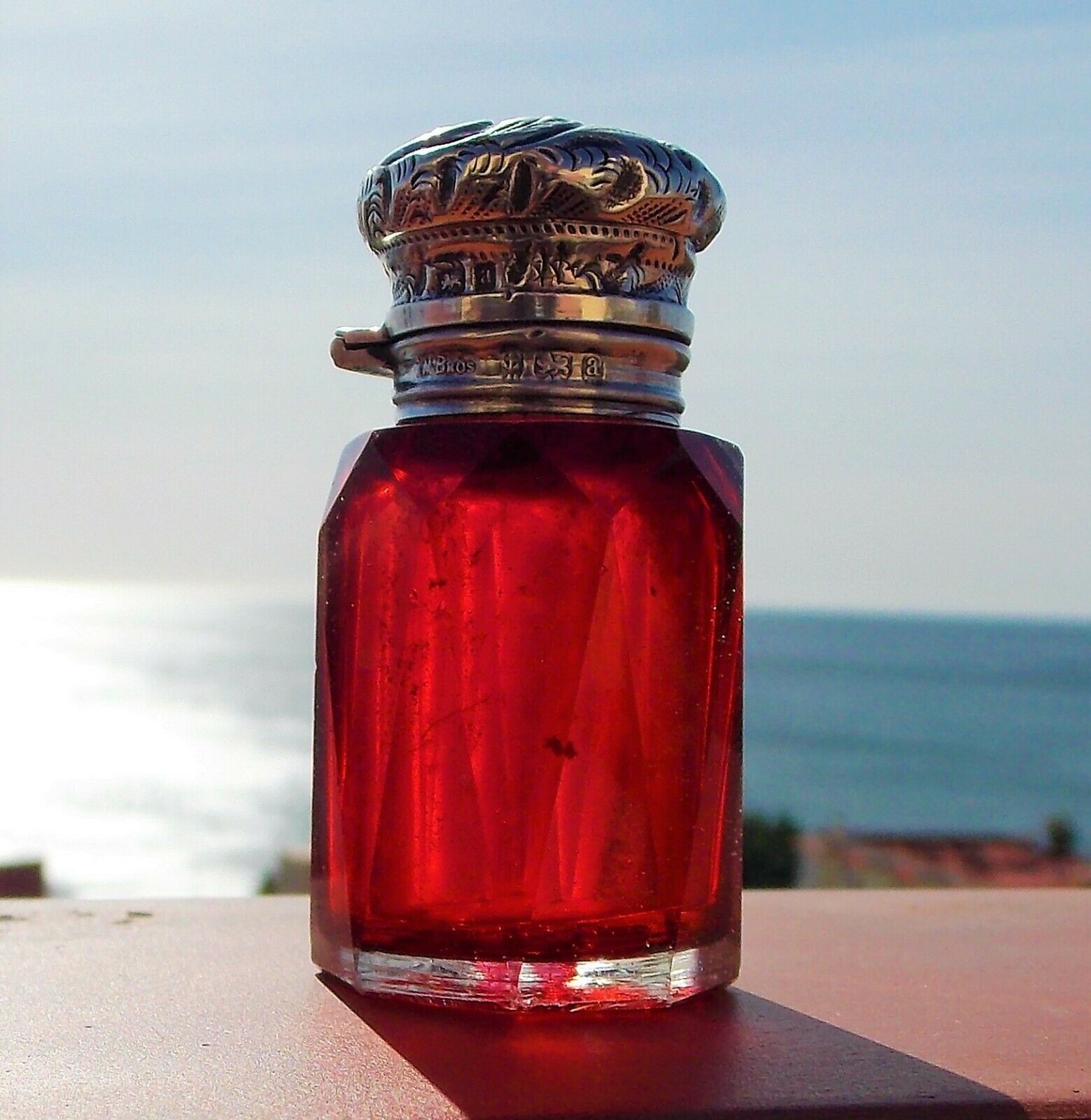 Rare Stunning Victorian Miller Bros Solid Silver Cut Glass Ruby Scent Bottle 1900