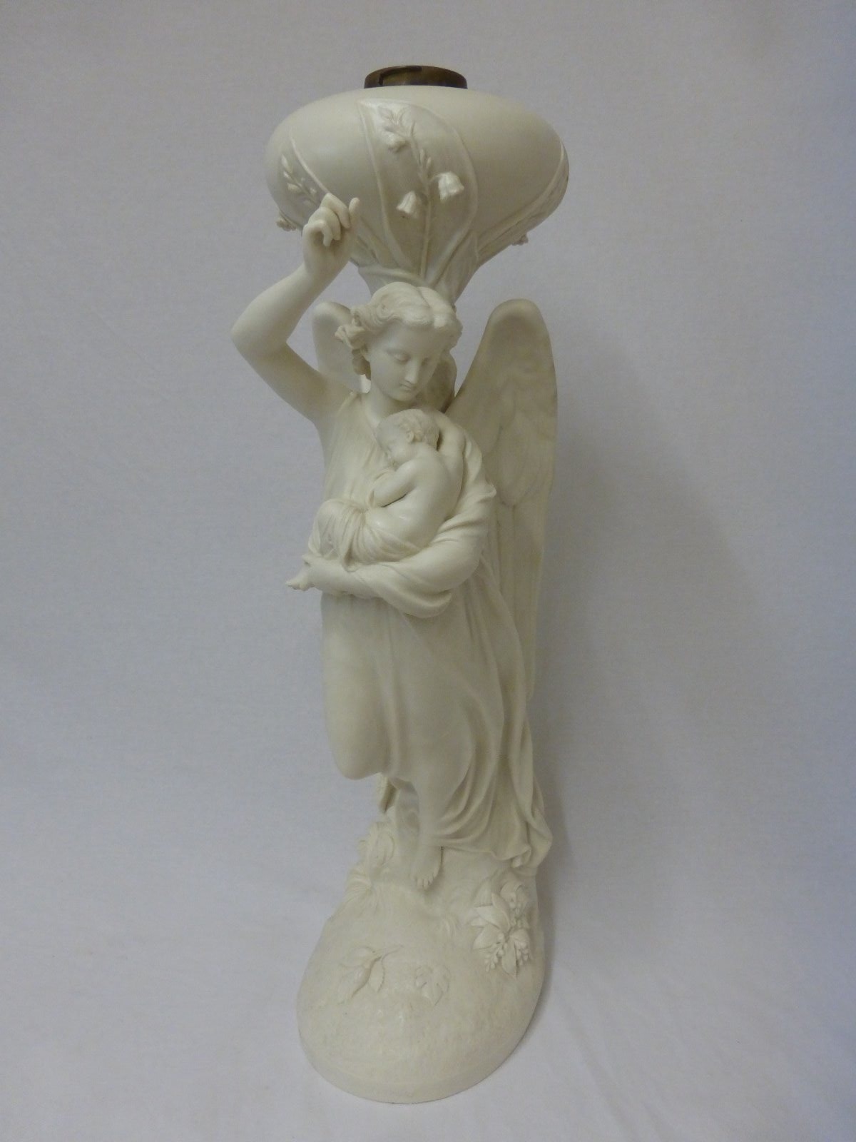 Rare Unique Unlisted 24" Copeland Parian Figure Oil Lamp Malempre 1875