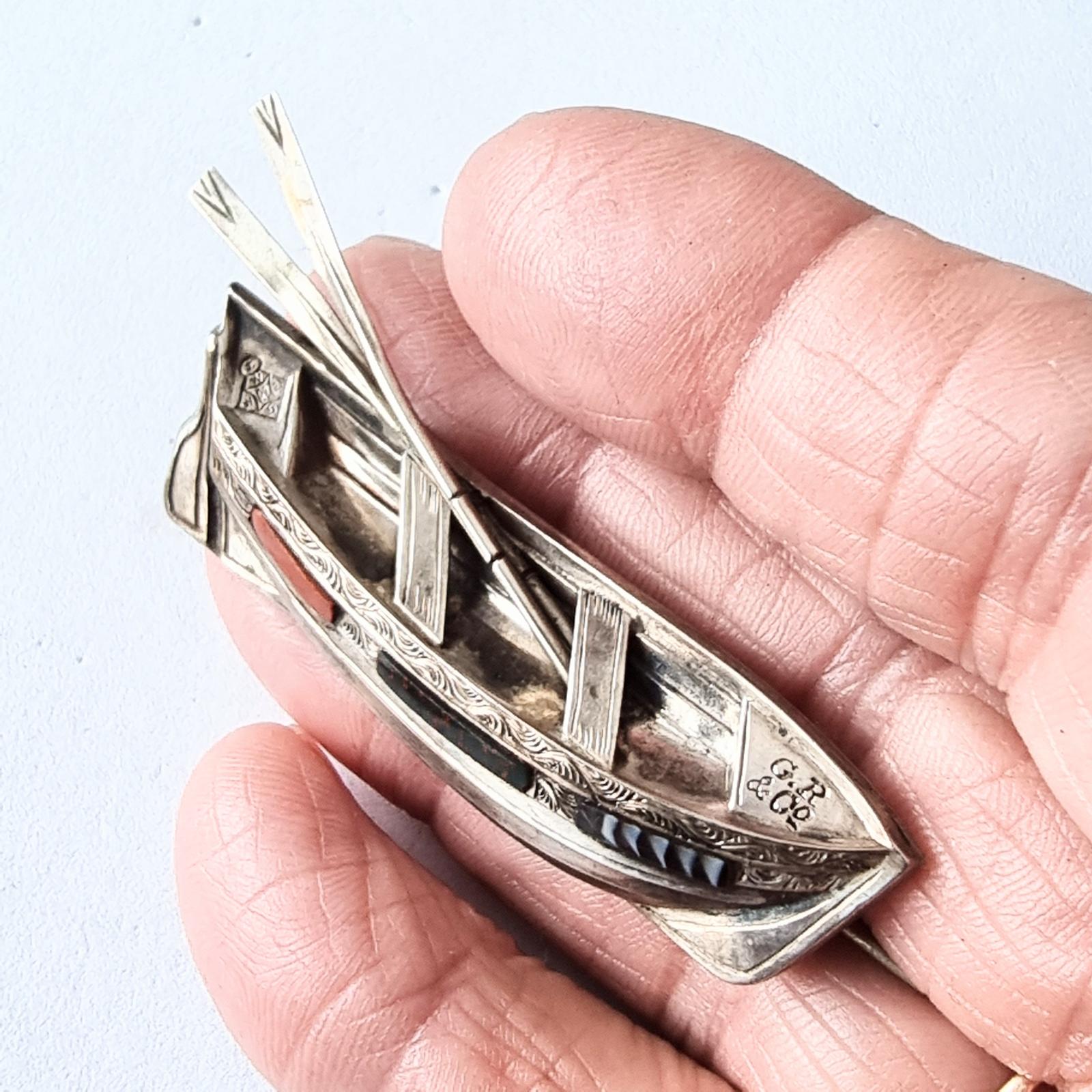 Rare & Unusual Antique Scottish Sterling Silver Brooch, Row Boat, Dory, Dinghy