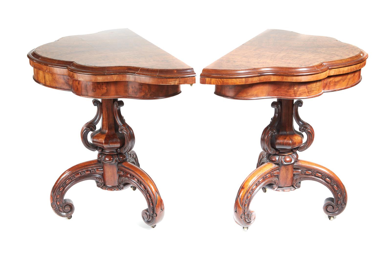 Rare & Unusual Pair of Victorian Burr Walnut Card Tables c.1850
