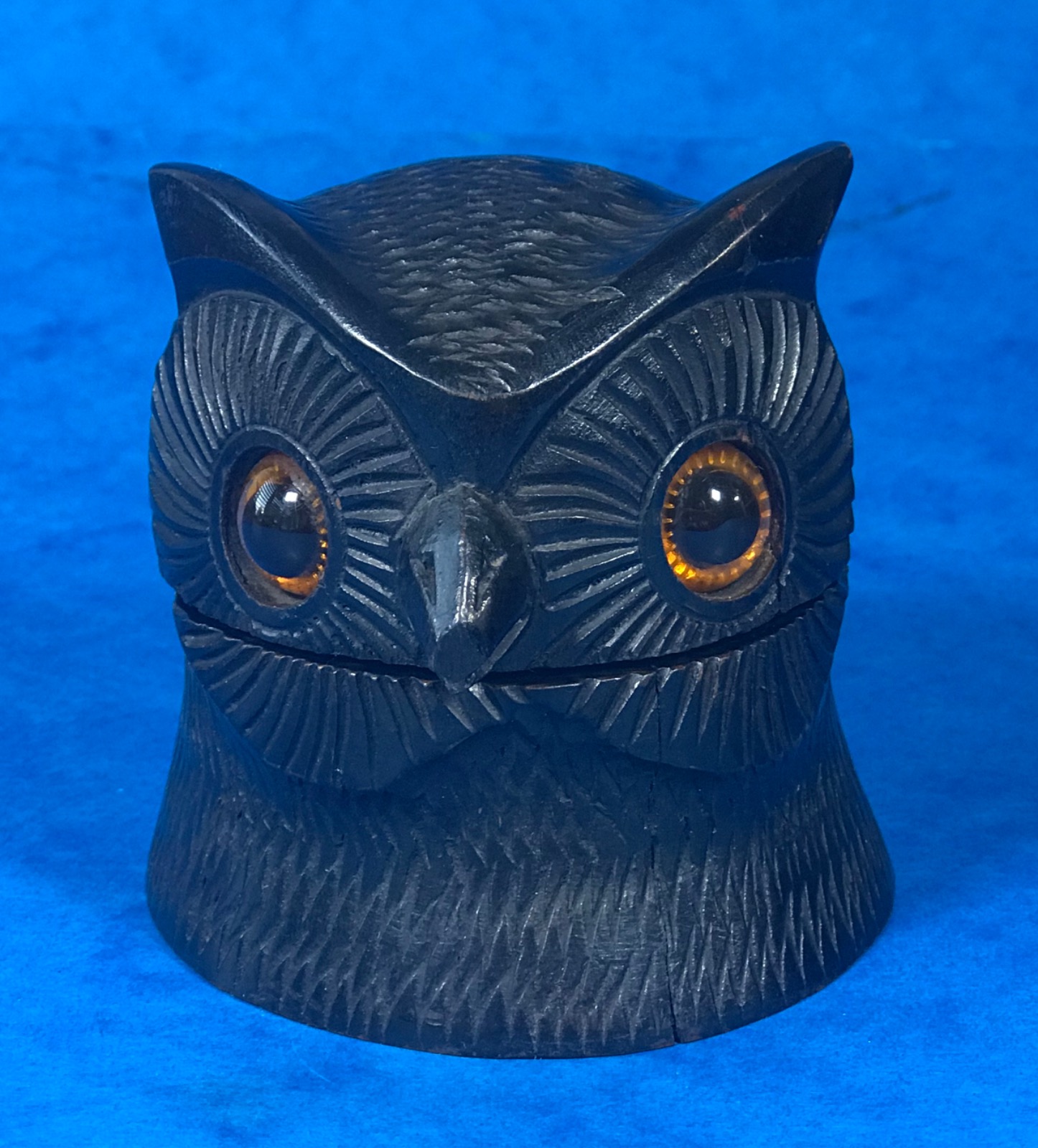 Rare & Unusual Victorian Ebonised Carved Inkwell