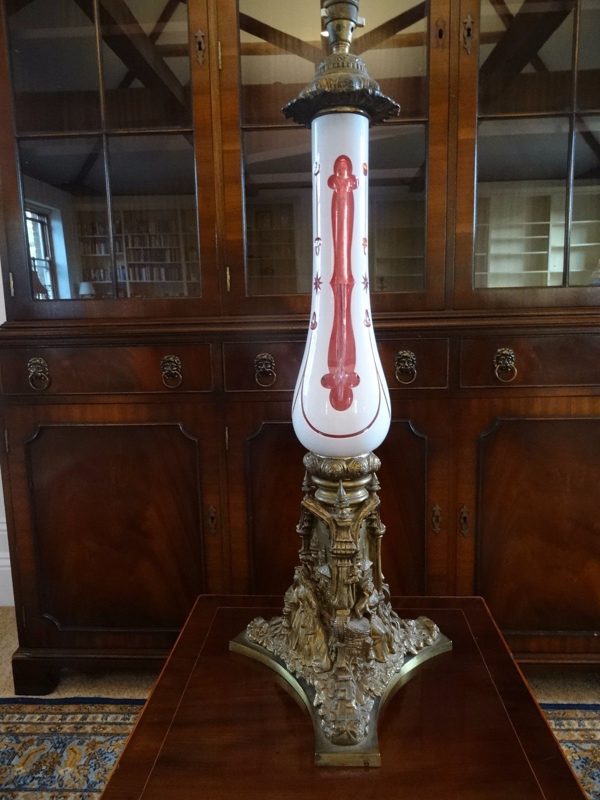 Rare Very Tall Bohemian Bronze & Ruby Glass Overlay Table Lamp