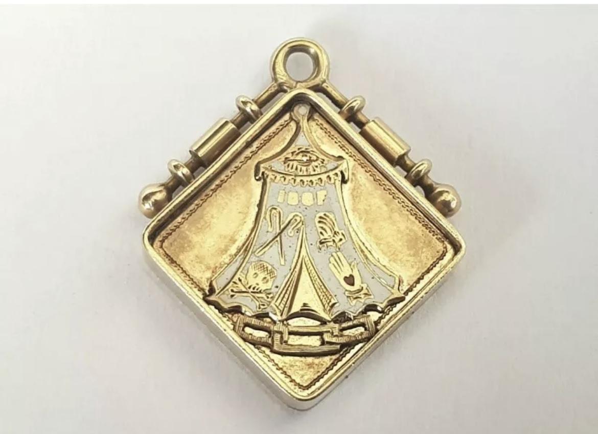 Rare Victorian 15ct Gold & Enamel Oddfellows Fob / Pendant