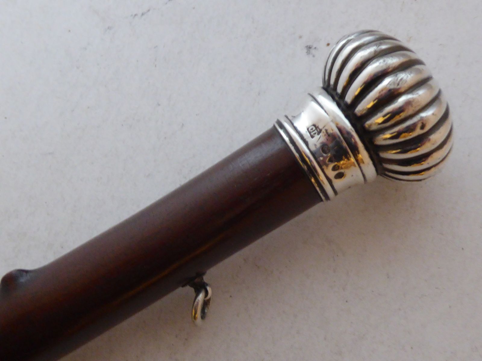 Rare Victorian 1887 Pop-up Pencil Gadget Walking Stick Cane Solid Silver Pommel Mahogany Shaft