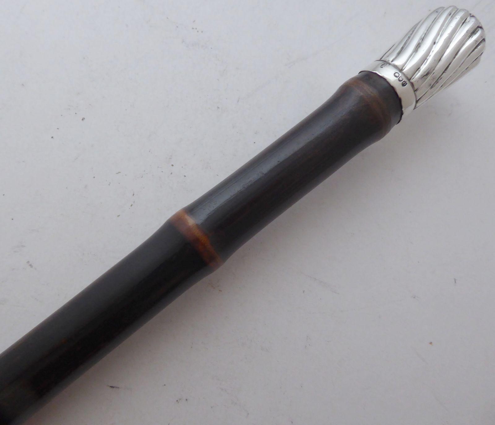 Rare Victorian 1889 Dog Walking Stick Cane Hallmarked Silver Pommel Bamboo Shaft Thornhill