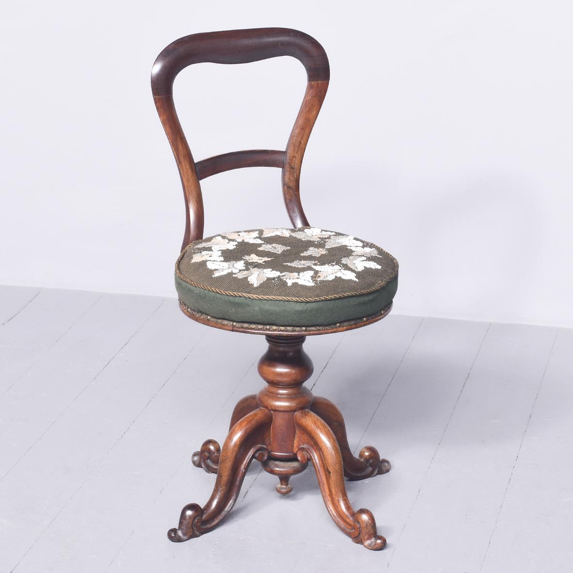 Rare Victorian Adjustable Rosewood Musician’s Chair