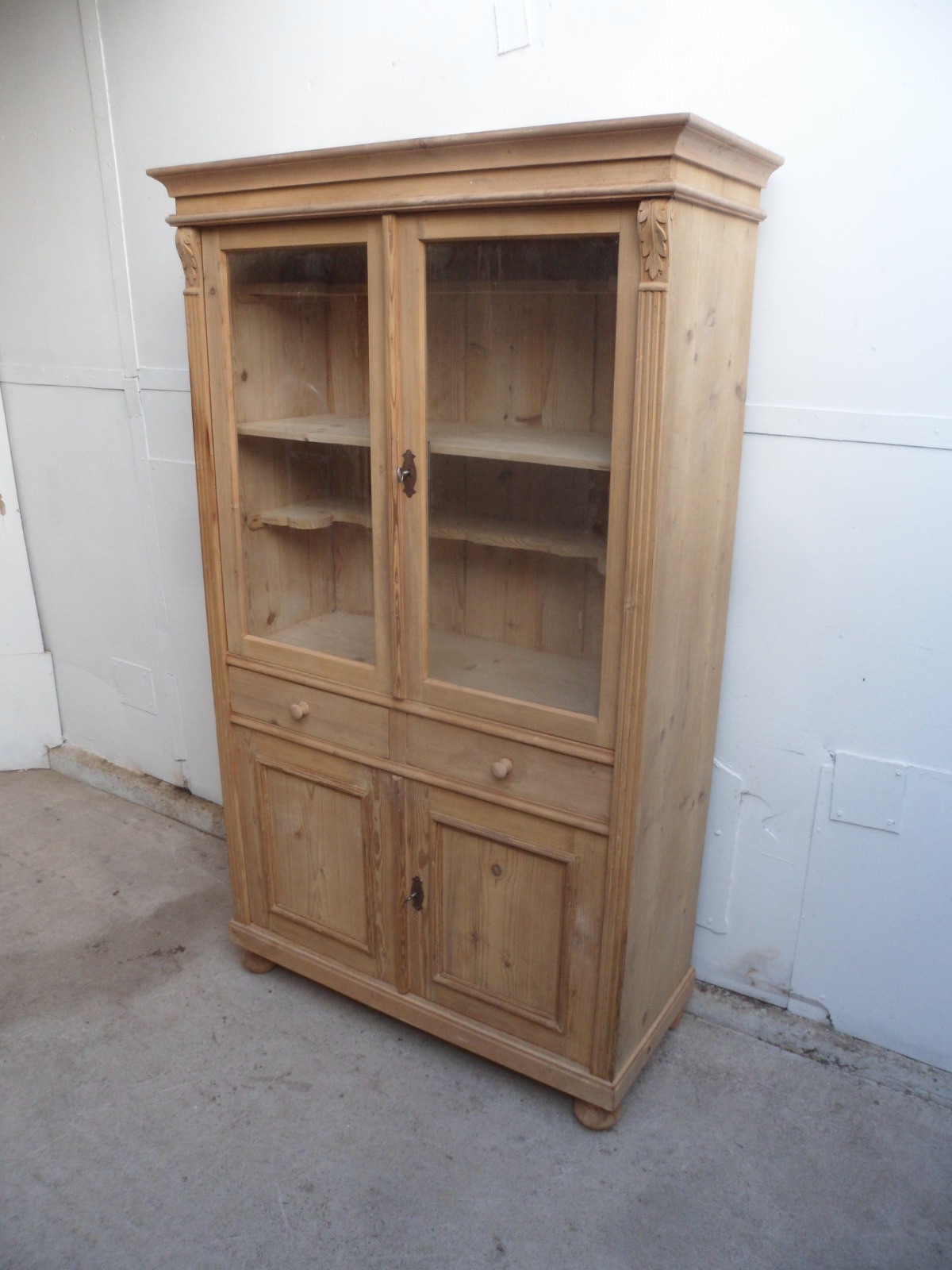 Rare Victorian Antique Pine 4 Door 2 Drawer Display Cabinet to wax / paint