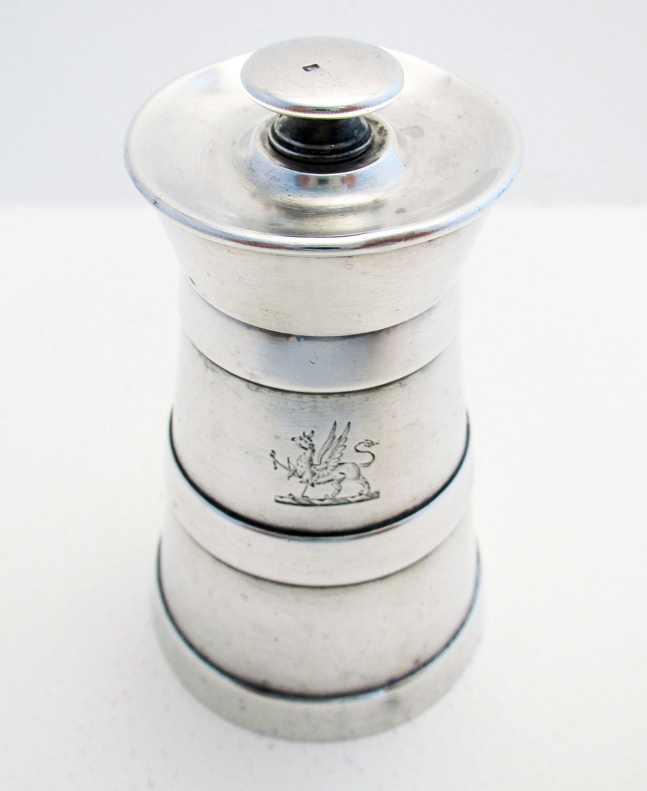 Rare Victorian Antique Solid Sterling Silver English Pepper Mill / Grinder, Birmingham Hallmarked 1889