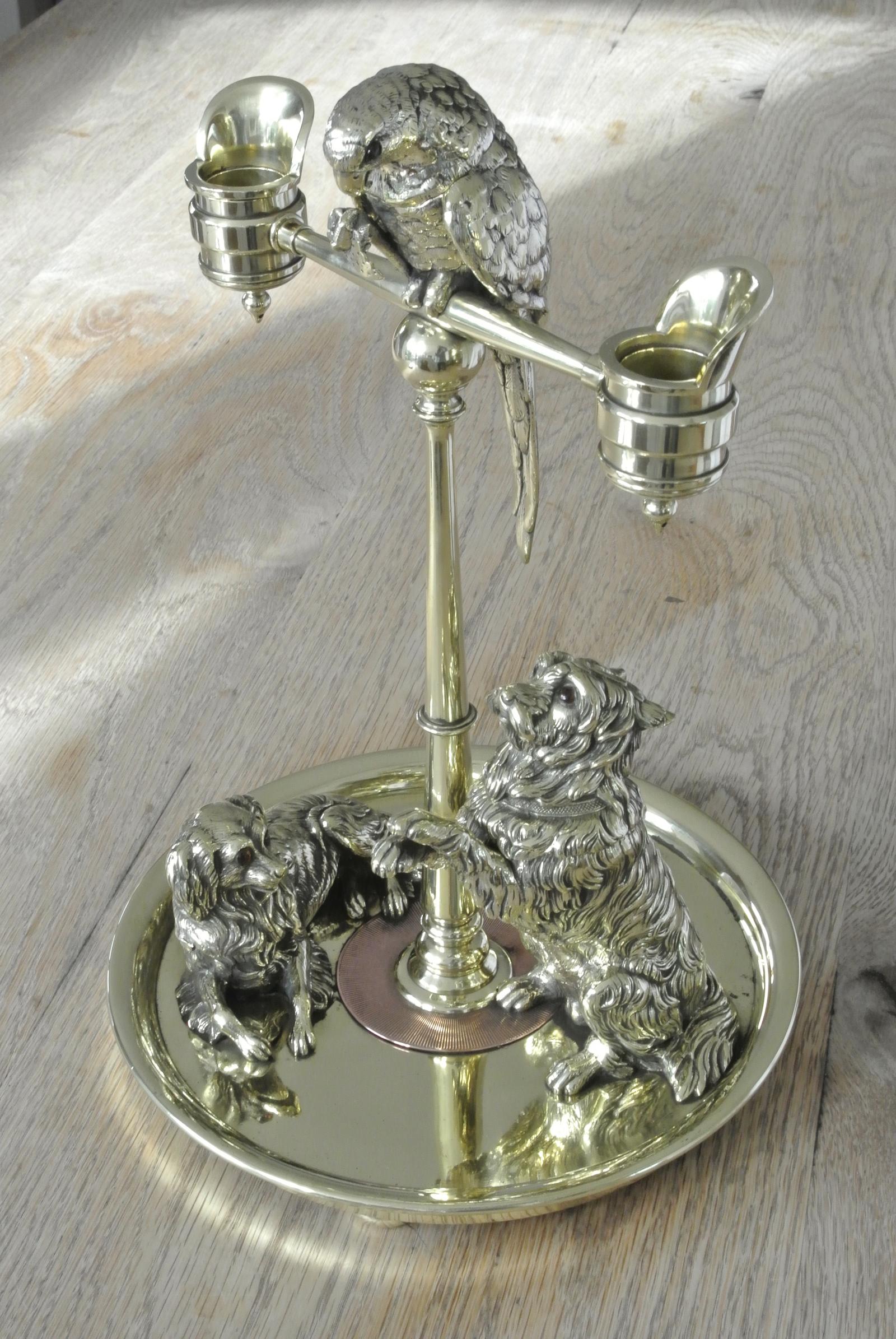 Rare Victorian Brass & Bronze Novelty Desk Compendium Inkwell Candlestick Vesta Based on Queen Victoria's Pets
