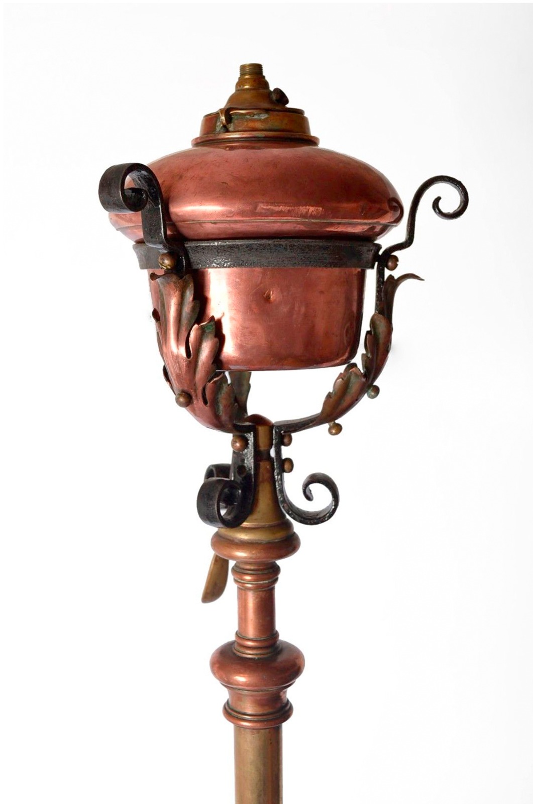 Rare Victorian Brass Copper & Wrought Iron Piano Standard Lamp