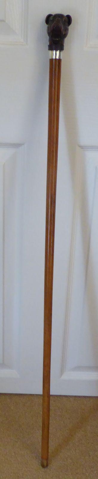 Rare Victorian Bull Dog Walking Stick Cane 1891 Hallmarked Silver Pommel Malacca