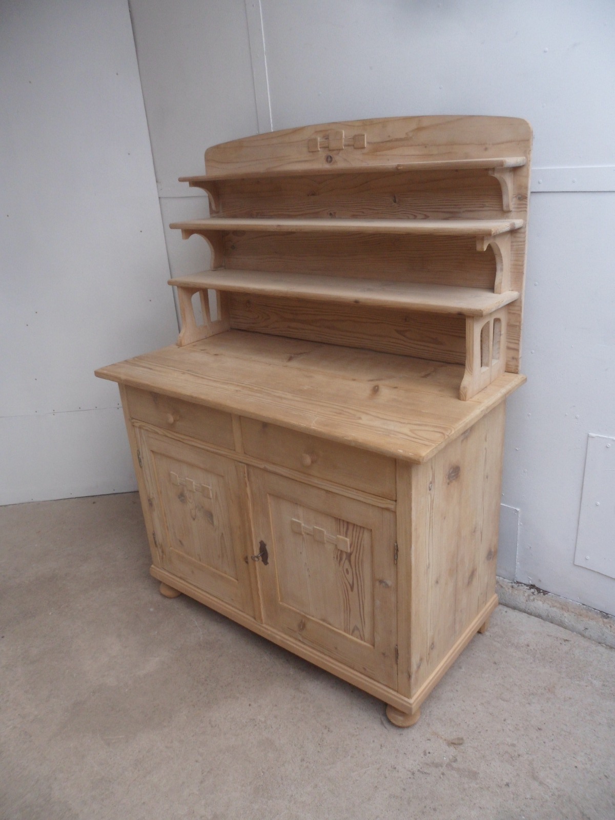 Rare Victorian Galleried Antique Pine 2 Door Dresser Base to wax / paint