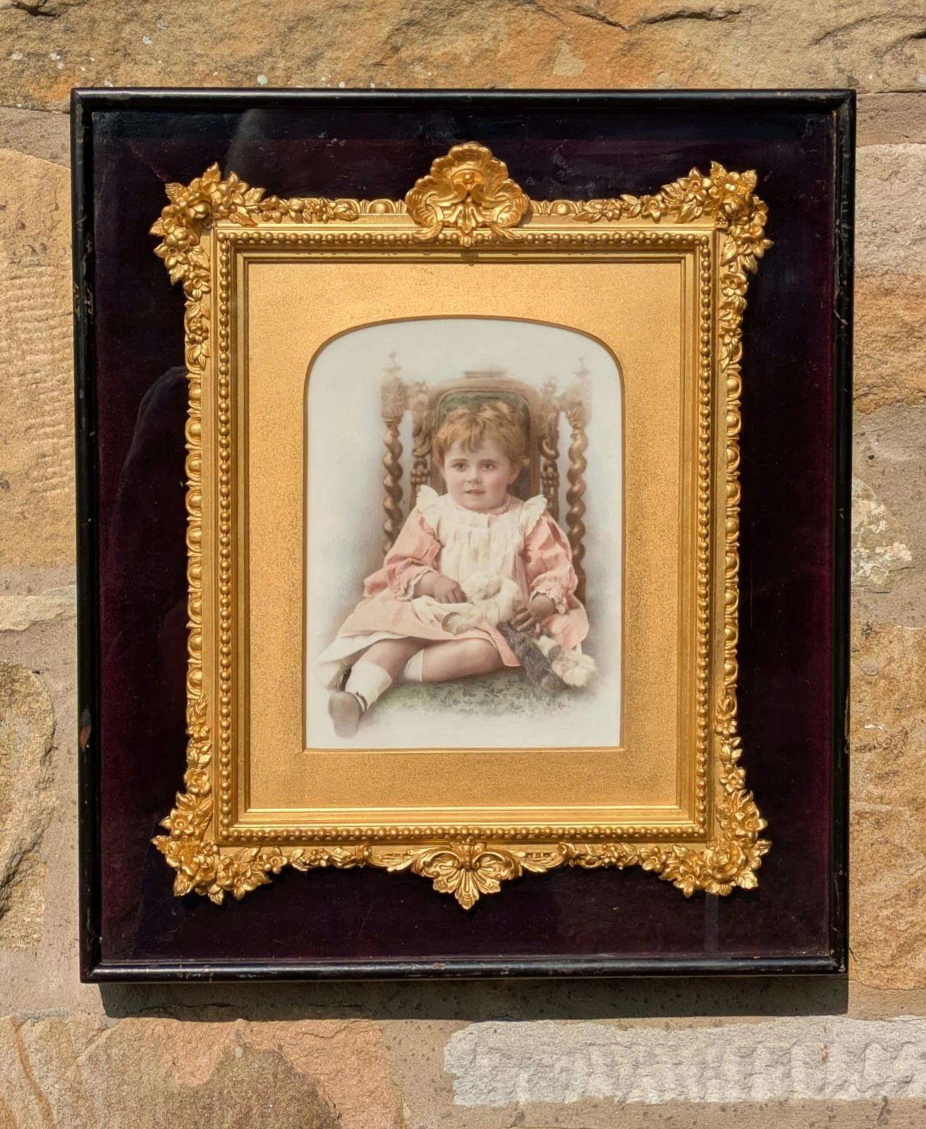 Rare Victorian Gilt Frame Deep Glazed Box Velvet Mount Child Portrait