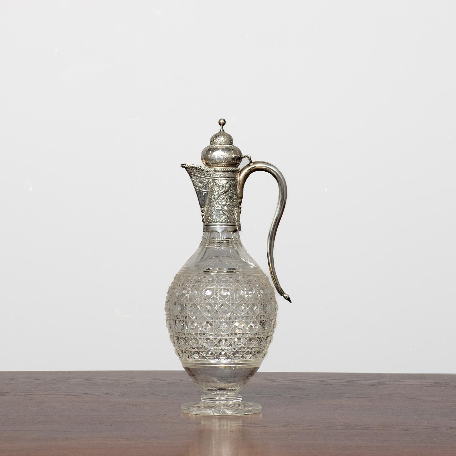 Rare Victorian, Hall-marked 1882 Silver-mounted Cut-crystal Claret Jug Made by Charles Boyton II.