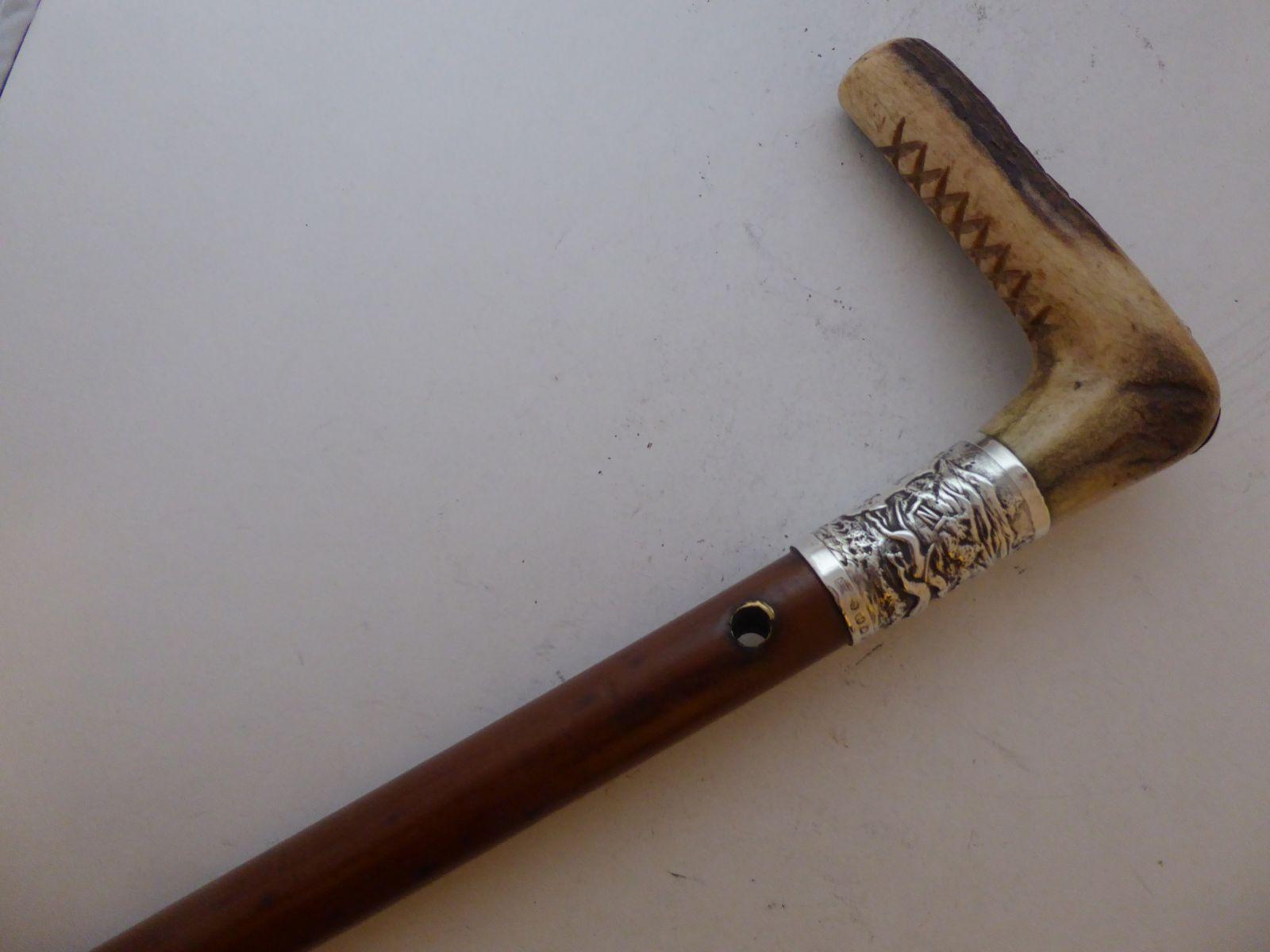 Rare Victorian Hare Coursing Walking Stick Cane 1859 Hallmarked Solid Silver
