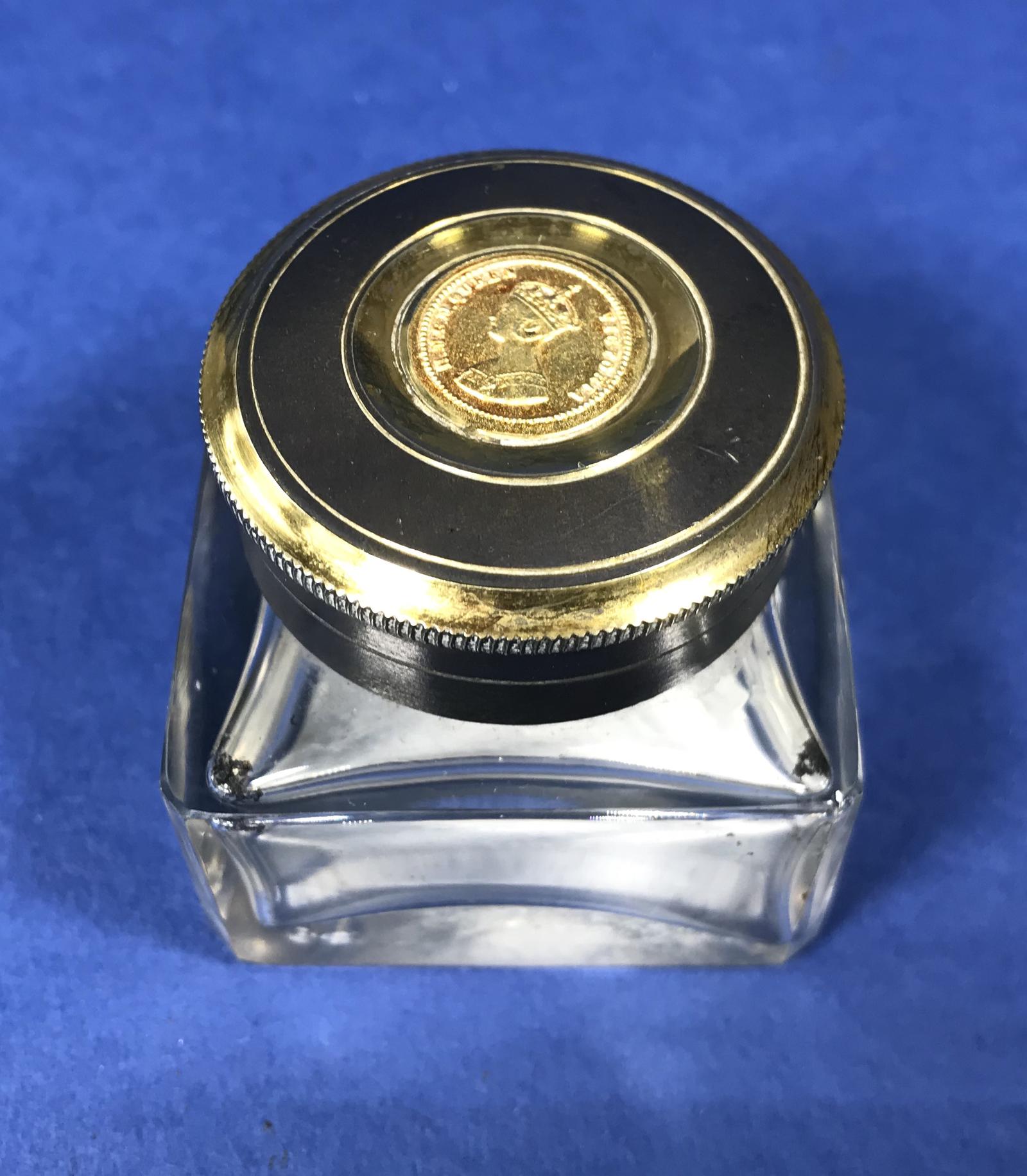 Rare Victorian Inkwell with Queen Victorian Stamp to the top