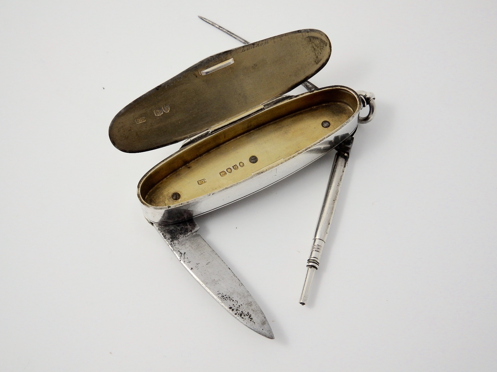 Rare Victorian Novelty Silver Combination Penknife Vesta - London 1883