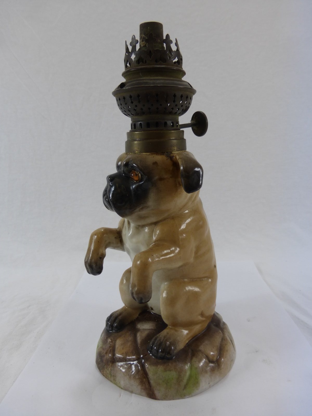 Rare Victorian Nursery Porcelain Pug Oil Lamp