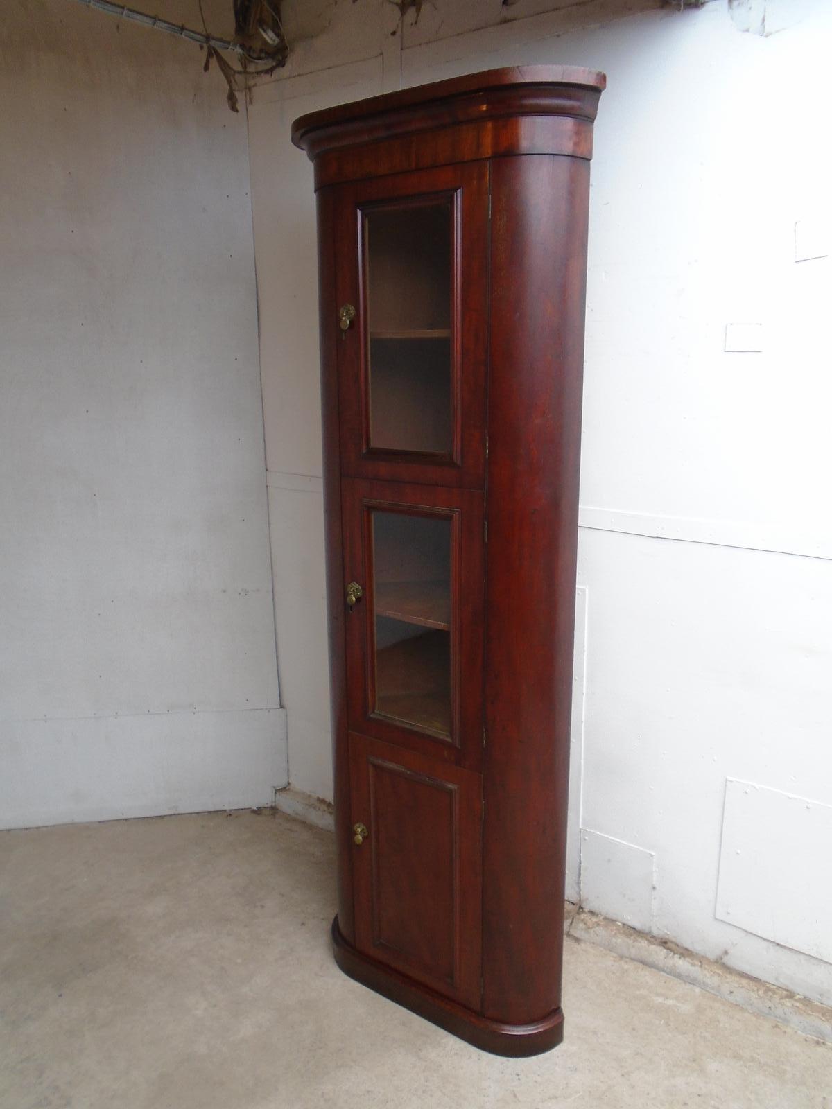 Rare Victorian Rounded Mahogany Tall 3 Door Corner Cabinet c.1880