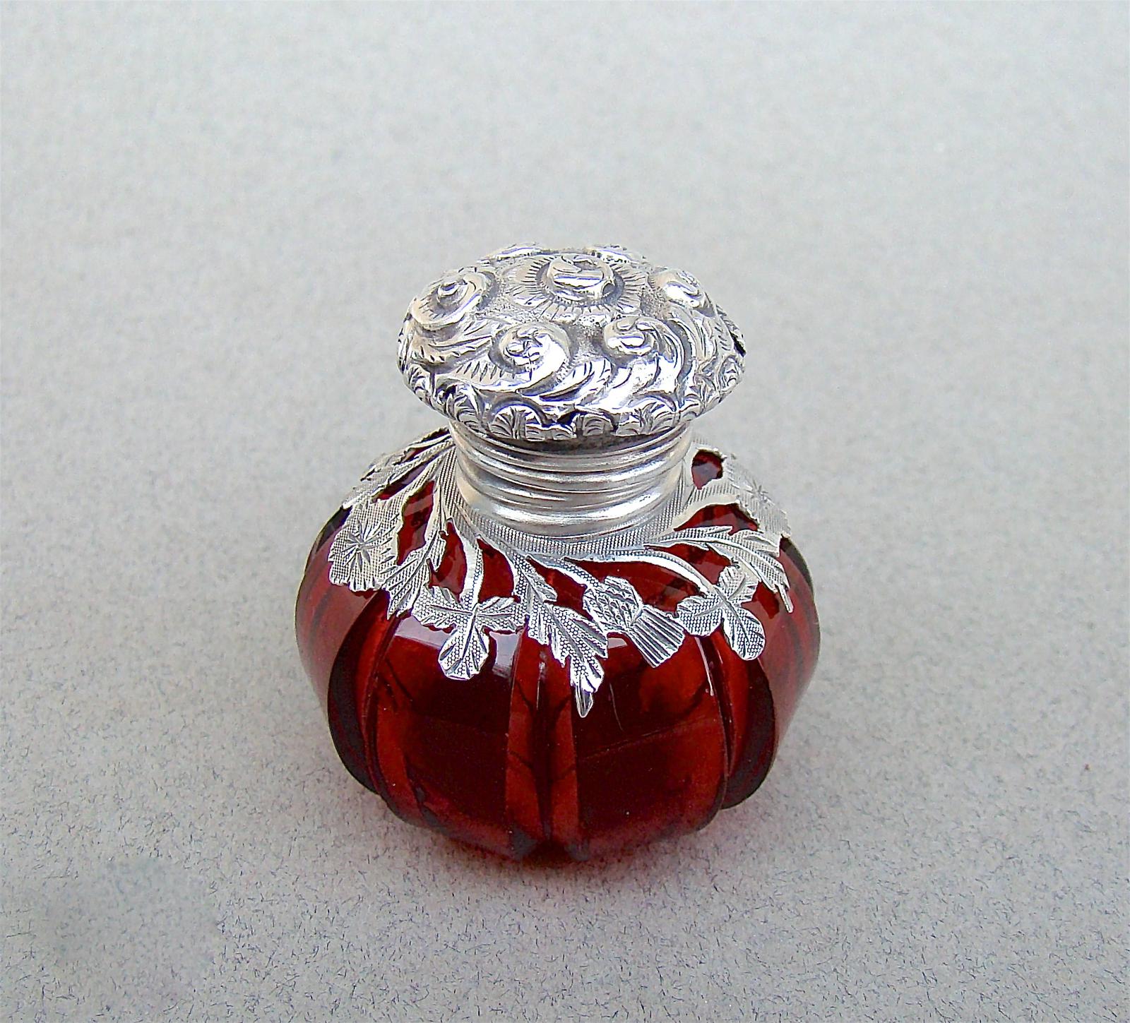 Rare Victorian Silver Mounted Cranberry Glass Vinaigrette c.1890