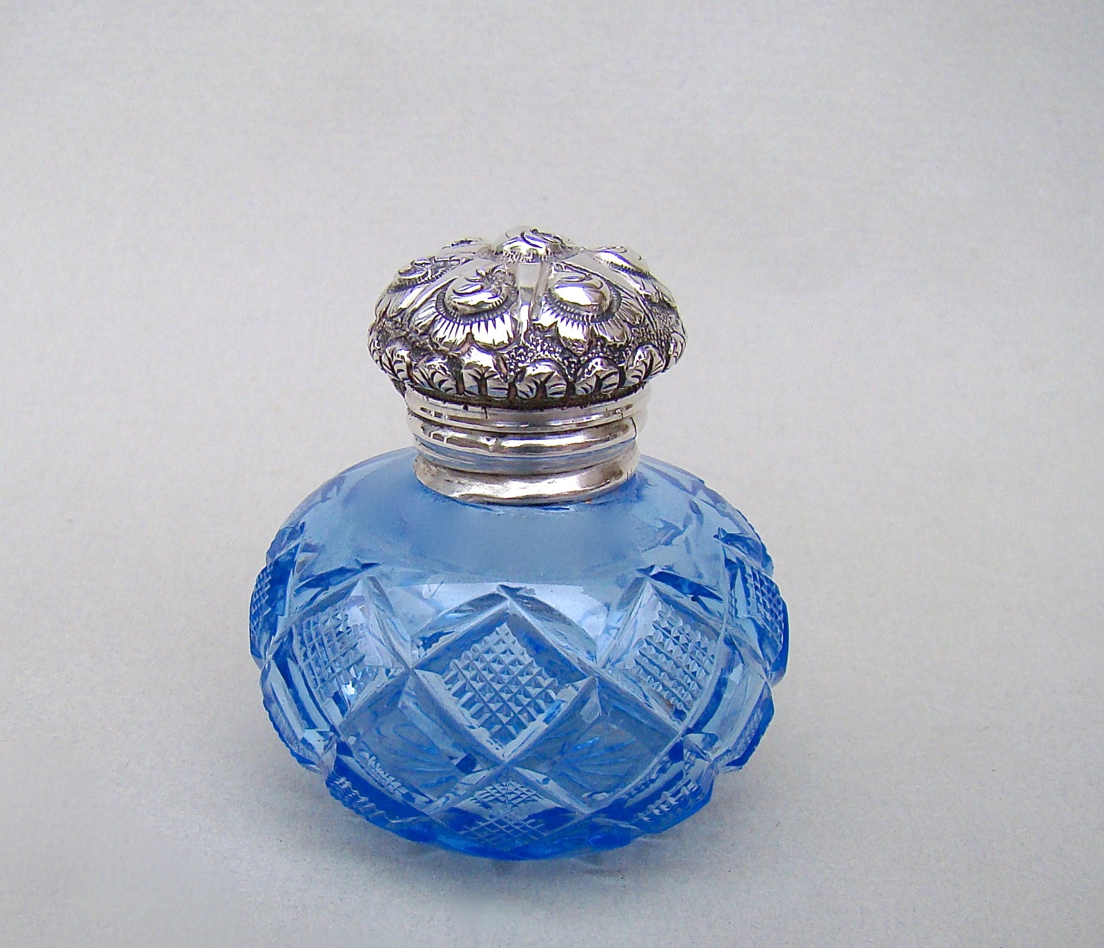 Rare Victorian Silver Mounted Uranium Blue Glass Vinaigrette c.1880