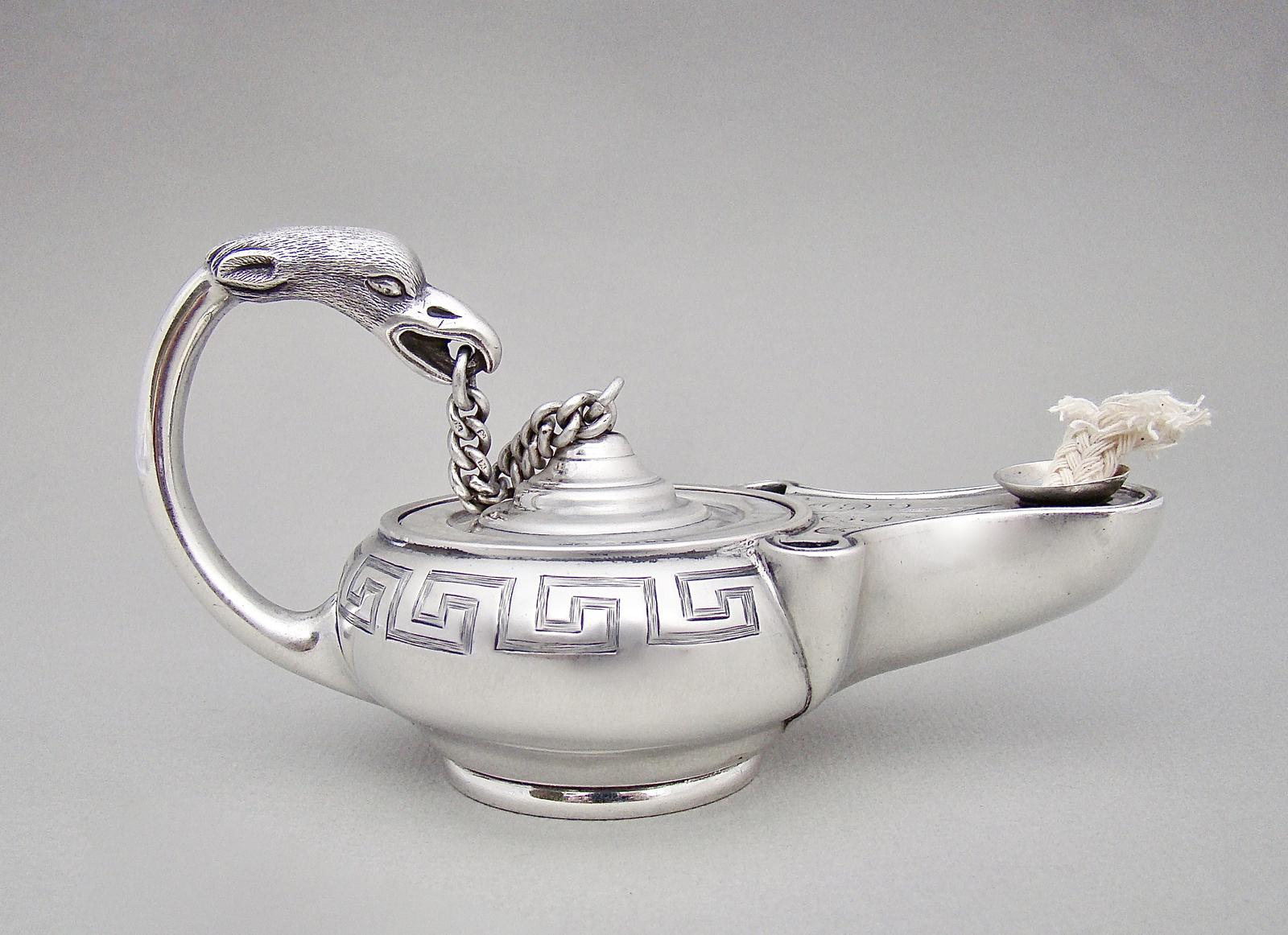 Rare Victorian silver Novelty table cigar lighter modelled as Aladdin’s lamp by John Figg, London 1849