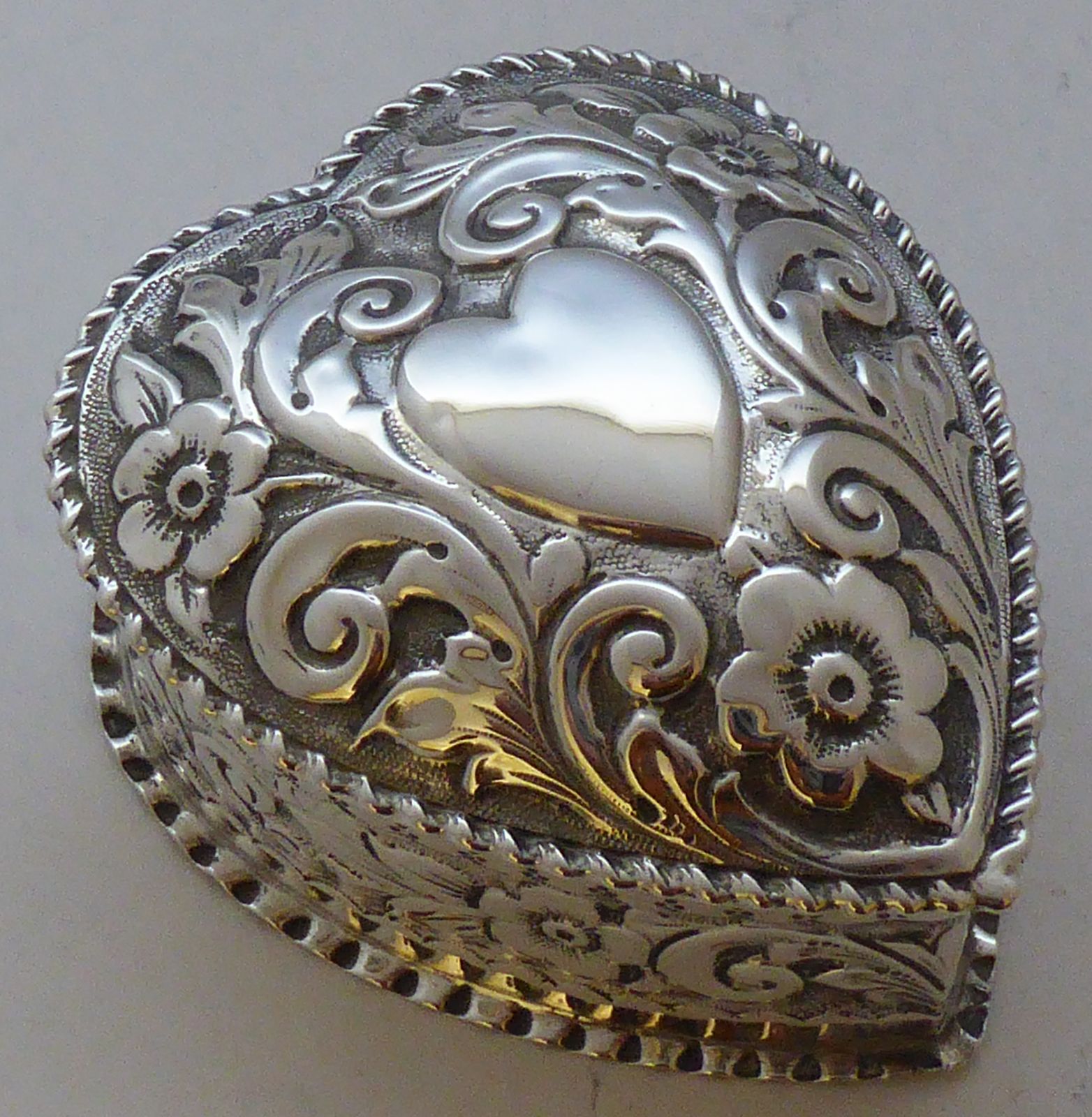 Rare Victorian Solid Silver Love Heart Pill Trinket Valentine Box Female Maker