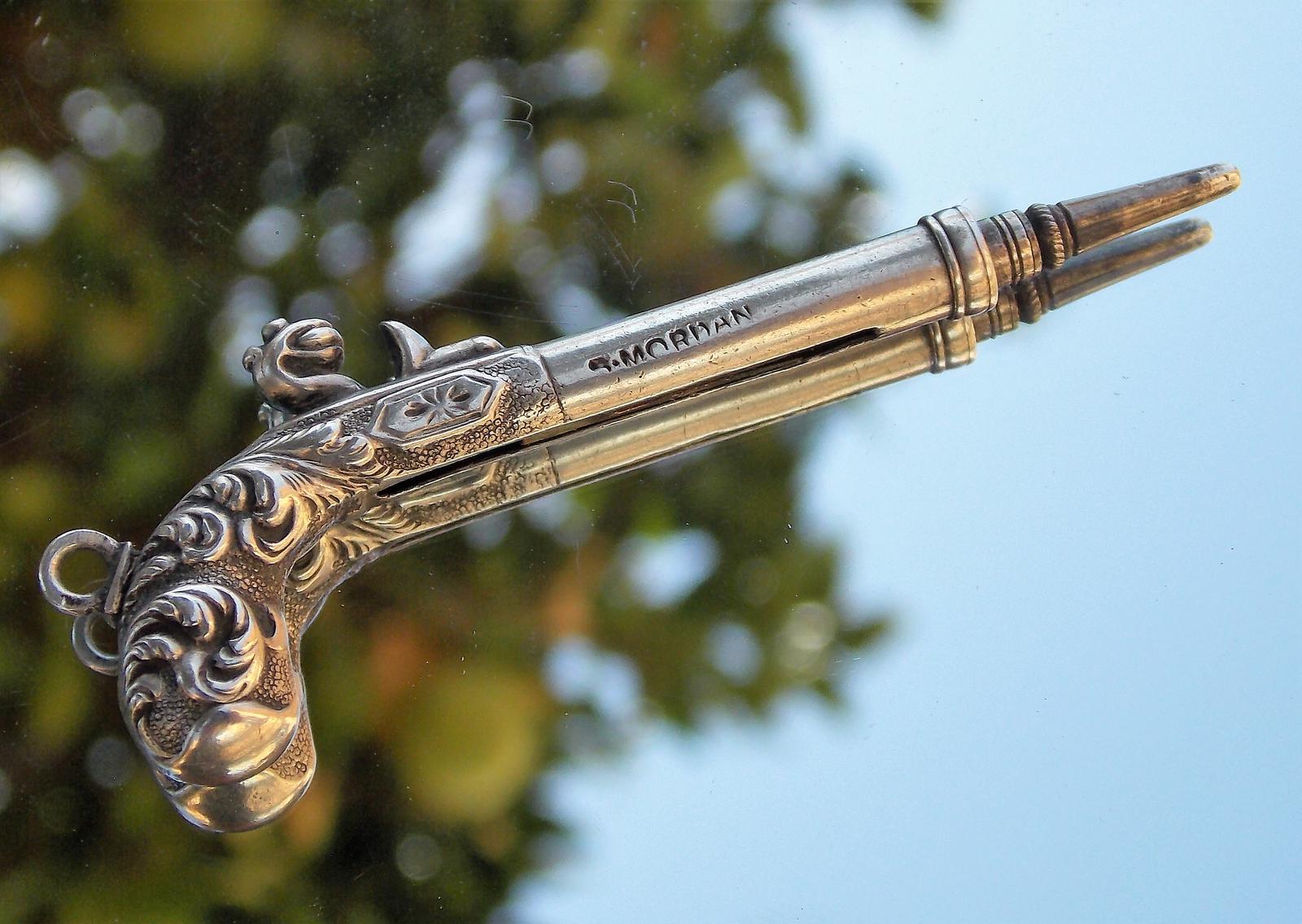 Rare Victorian Solid Silver Sampson Mordan Flintlock Pistol Propelling Pencil