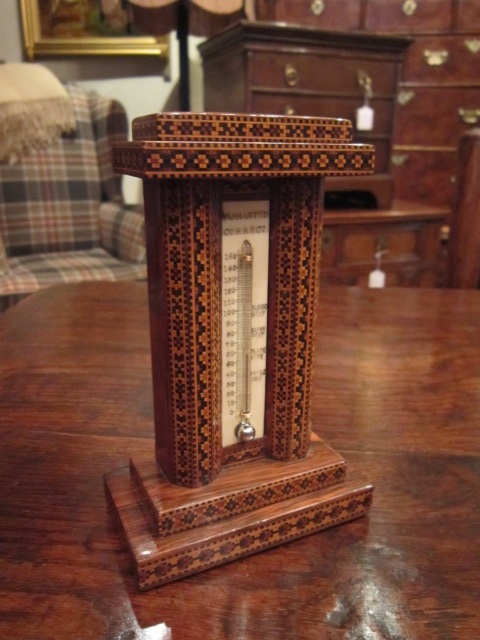 Rare Victorian Tunbridge Ware Desk Thermometer