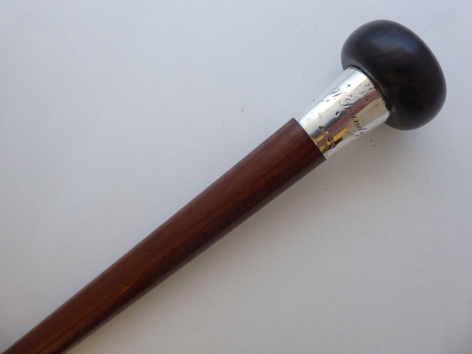 Rare Victorian Walking Stick Cane 1891 Hallmarked Silver Collar Snakewood Shaft