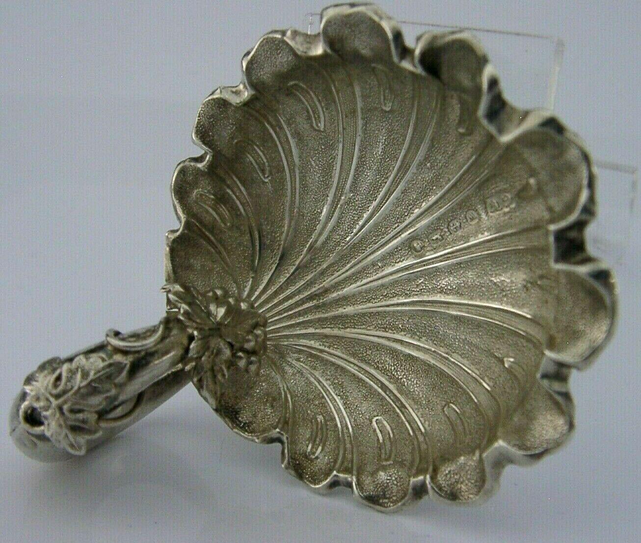 Rare Vine Leaf English Solid Sterling Silver Caddy Spoon 1871 Antique Victorian