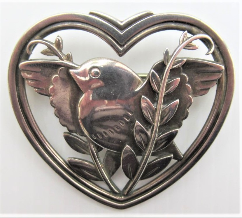 Rare Vintage Georg Jensen Heart / Dove Brooch Designed by Arno Malinowski C.1960