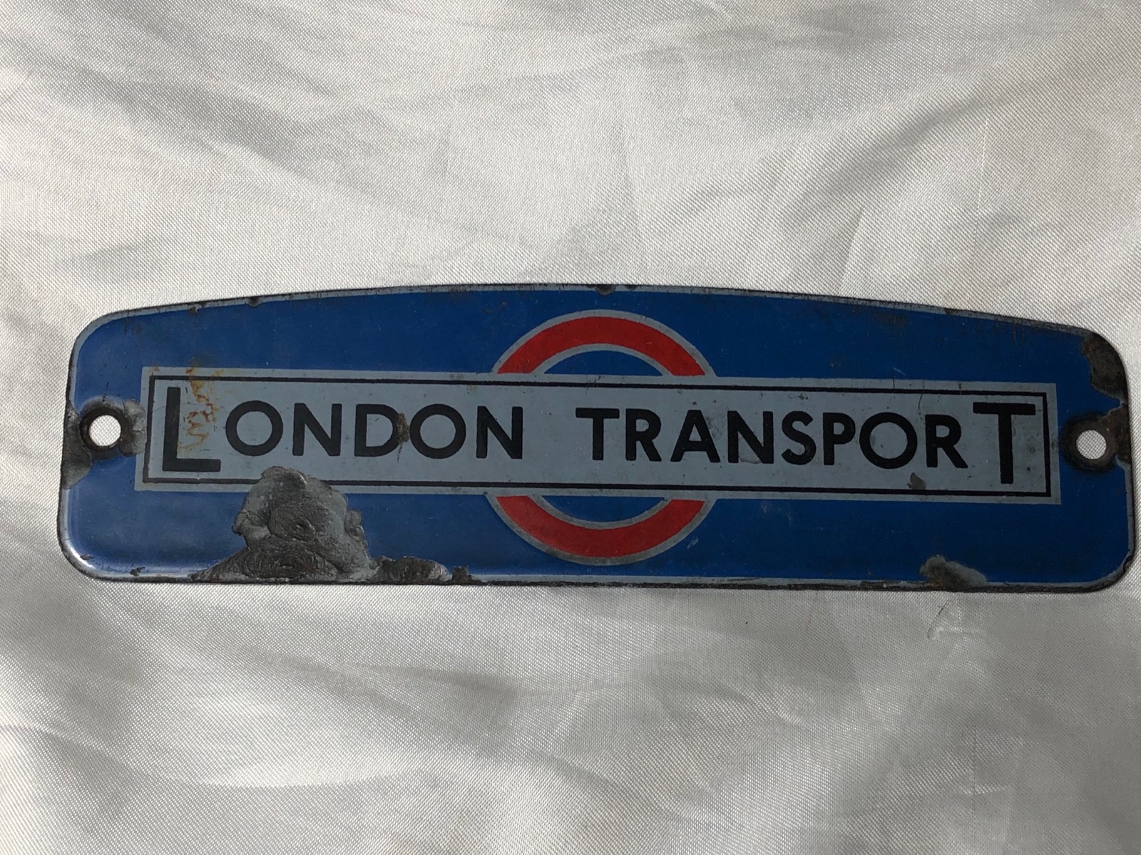 Rare Vintage Old Mid 20th Century London Transport Logo Enamel Wall Advertising Sign