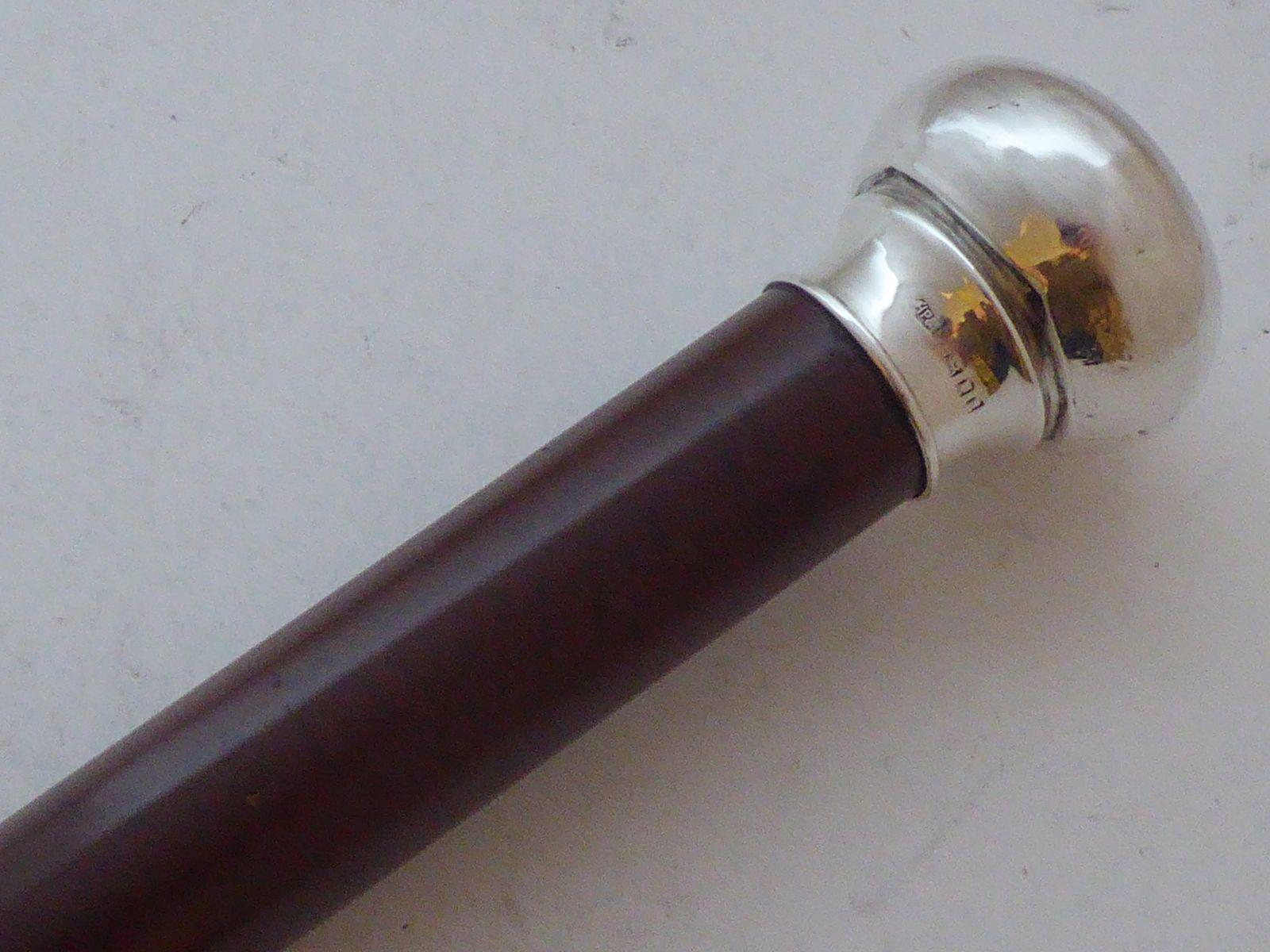 Rare Walking Stick Cane 1903 Hallmarked Solid Silver Pommel Snakewood Shaft