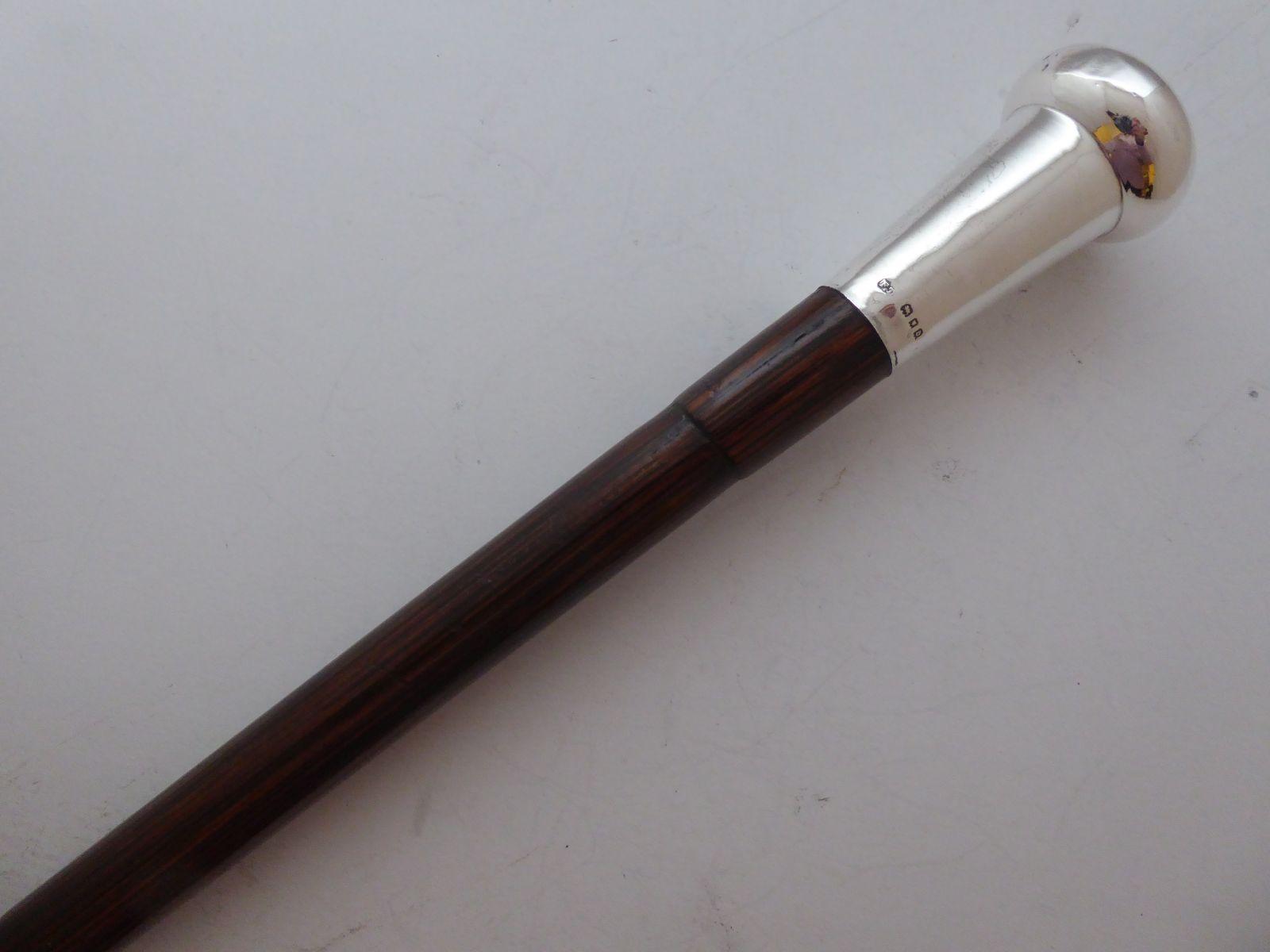 Rare Walking Stick Cane 1919 Hallmarked Solid Silver Pommel Palmwood Shaft
