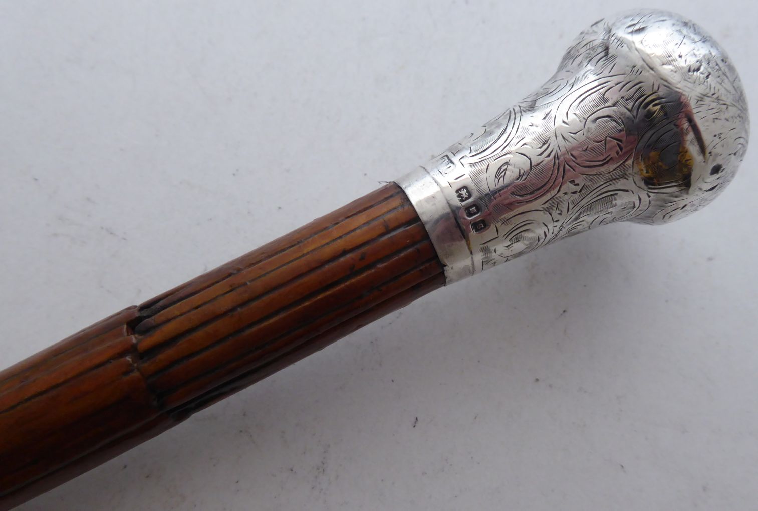 Rare Walking Stick Cane 1922 Silver Pommel Domino Match Stick Folk Art Shaft