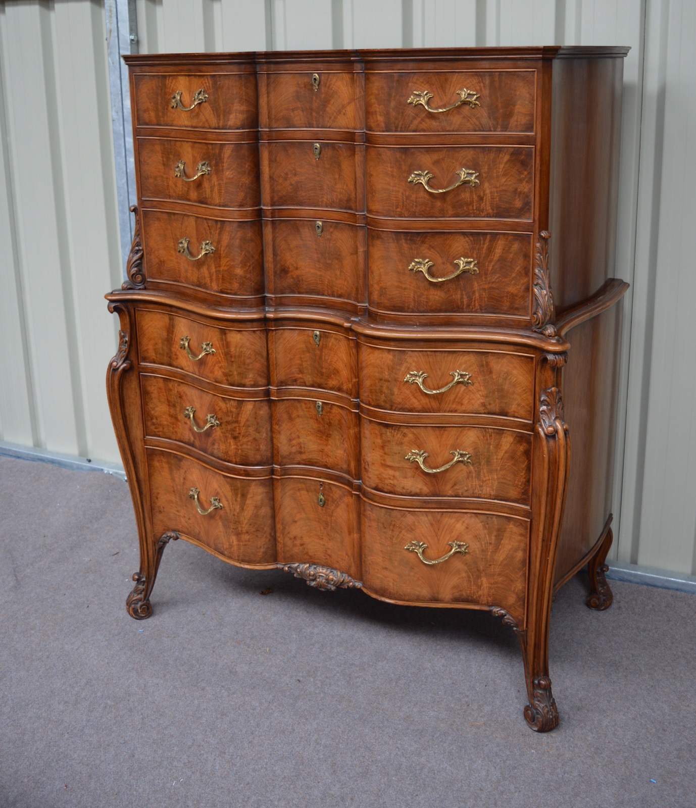 Rare Walnut Serpentine Chest on Chest Hille of London c.1930