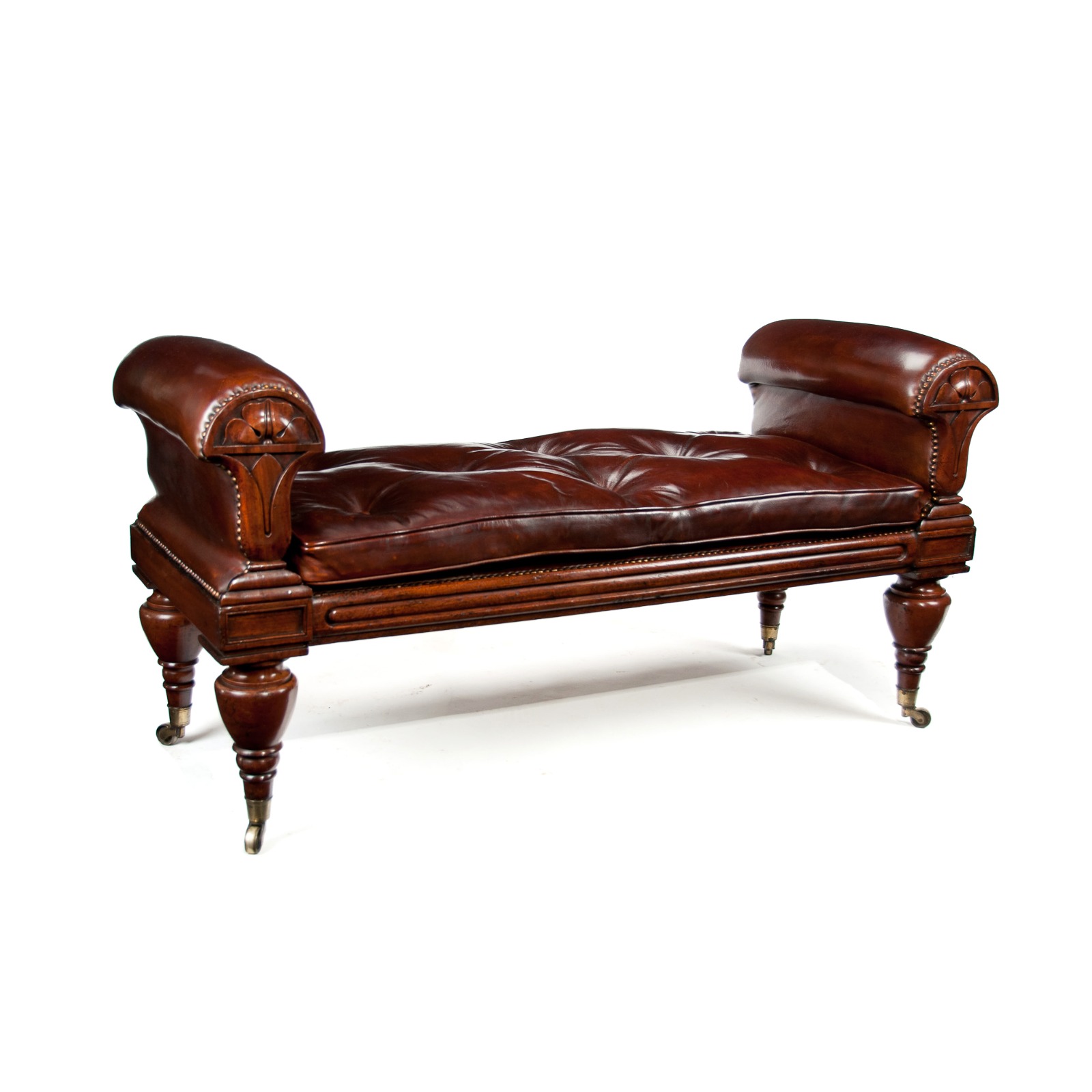Rare William IV Mahogany & Leather Window Seat after John Taylor