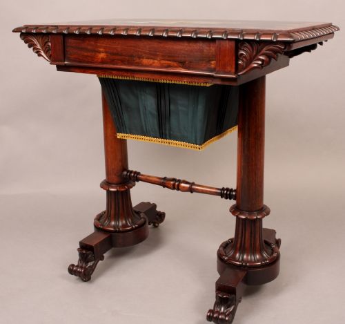 Rare William IV Sewing Table with Slate Top Painted