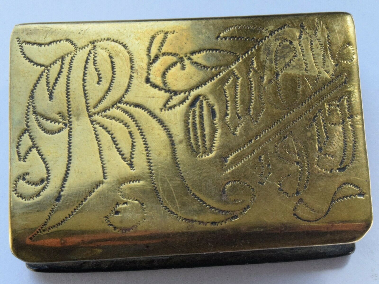 Rare WWI Trench Art Brass Match Box Holder -1917 France Rouen John Bullock Bullock