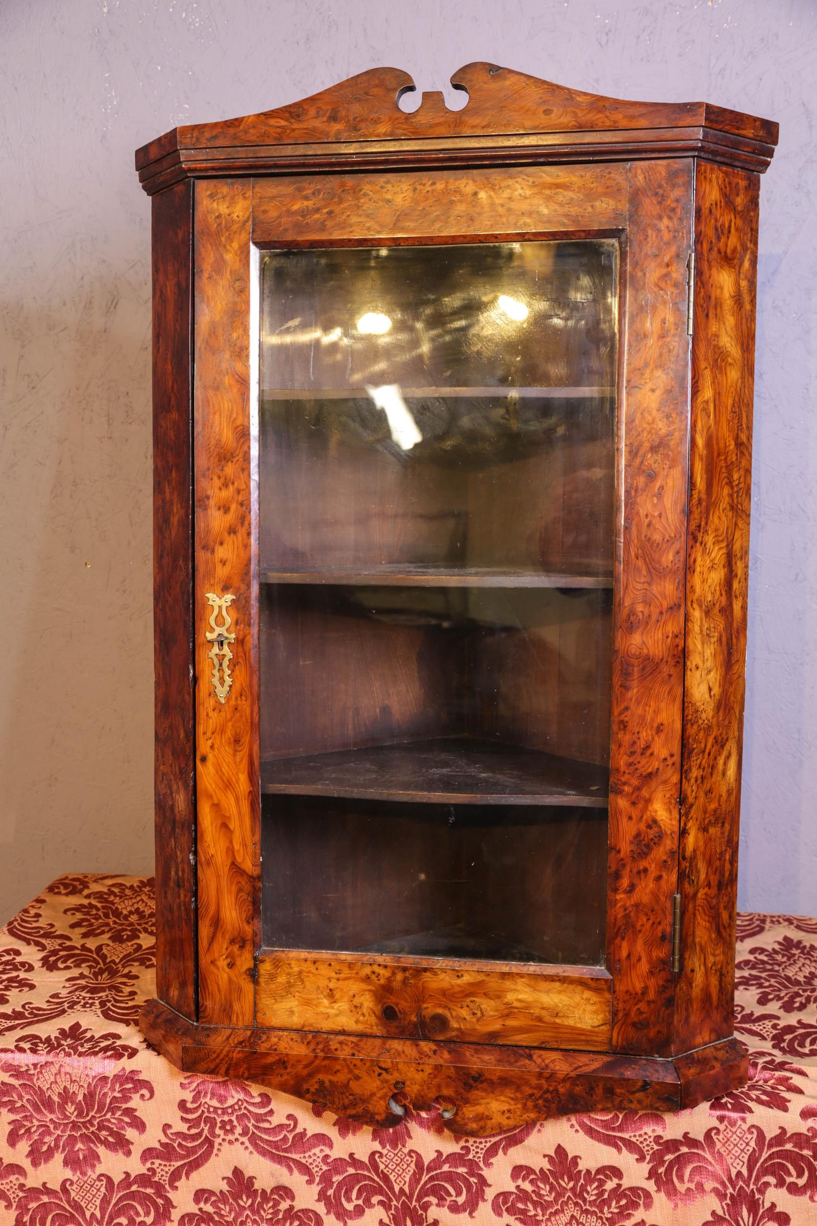 Rare Yew Wood Corner Cupboard Glazed Door