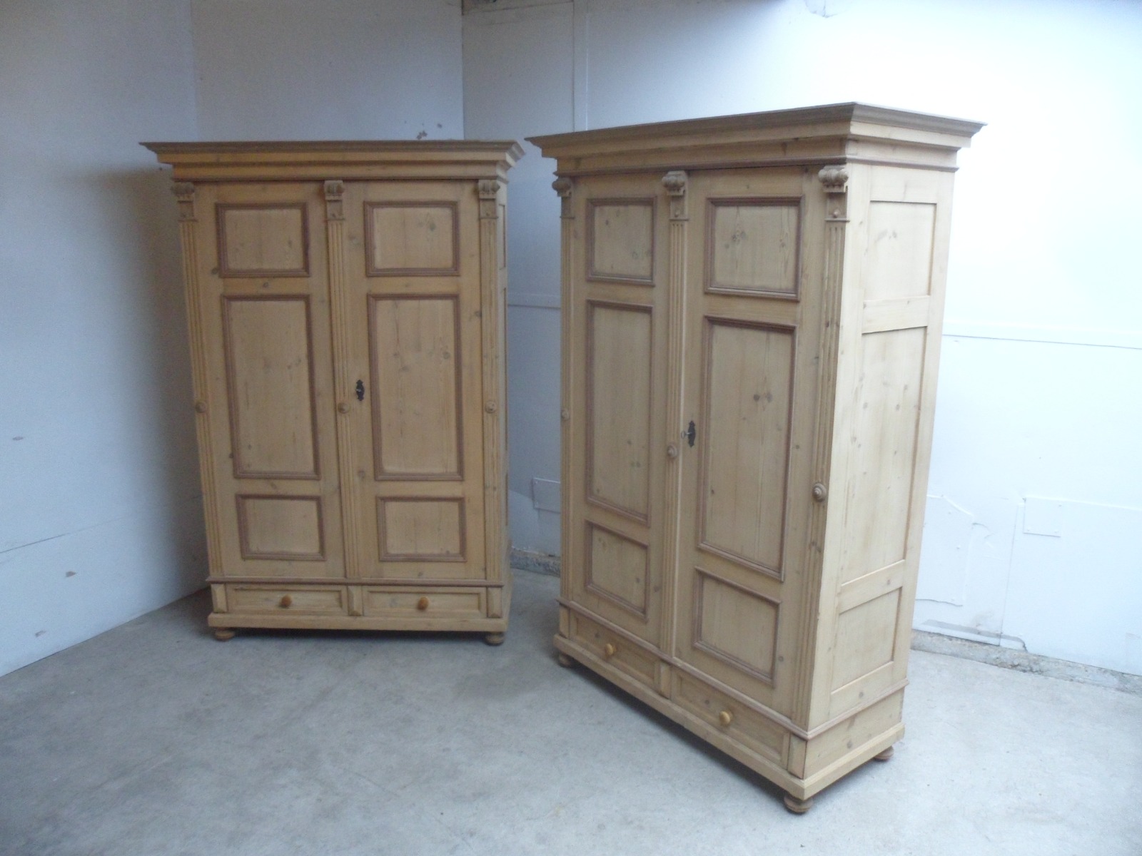 Rarest Pair of Victorian Antique Pine Knockdown Wardrobes to wax / paint