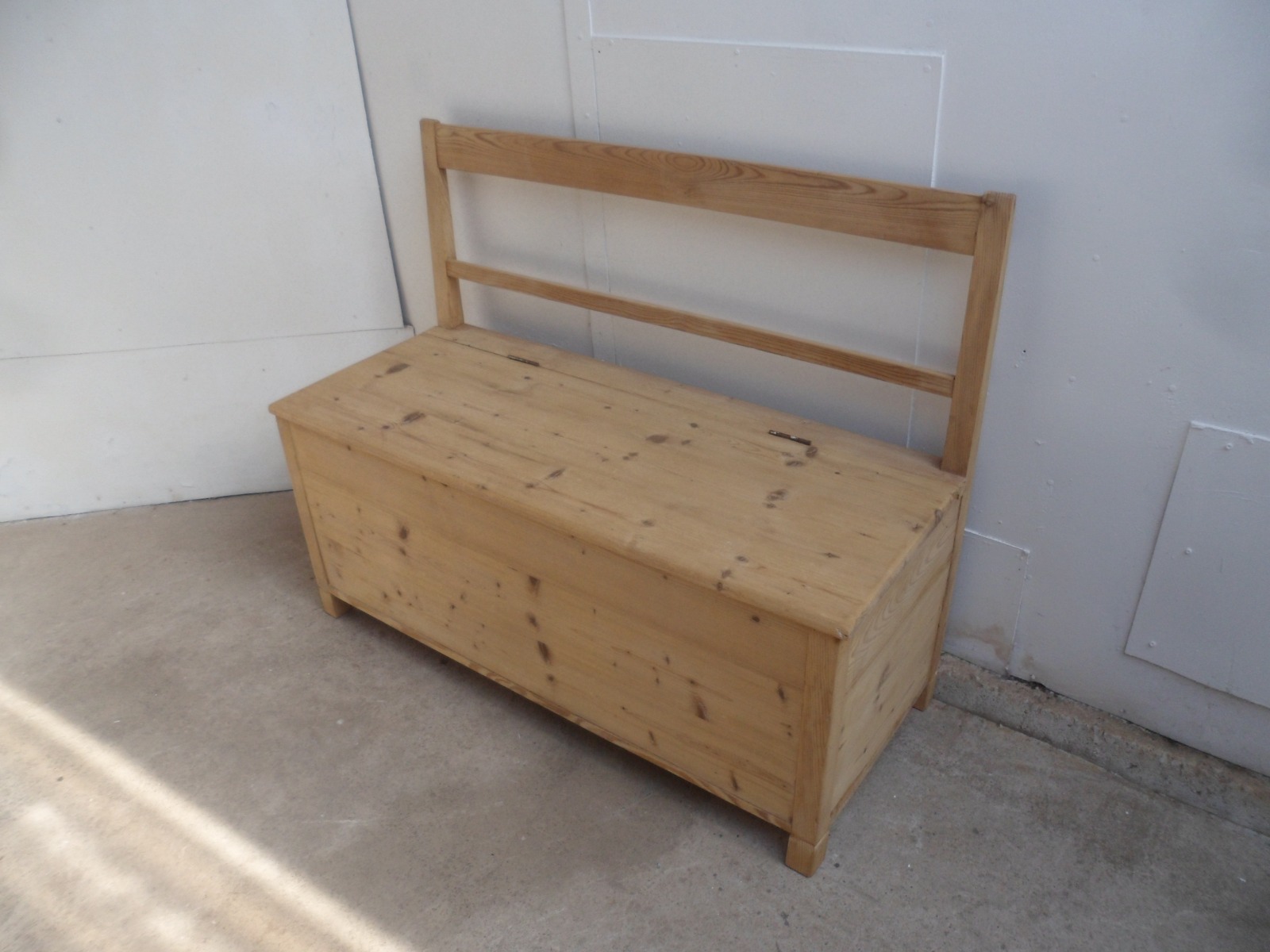 Really Early Victorian Antique Pine Simple 2 Seater Box Settle / Bench