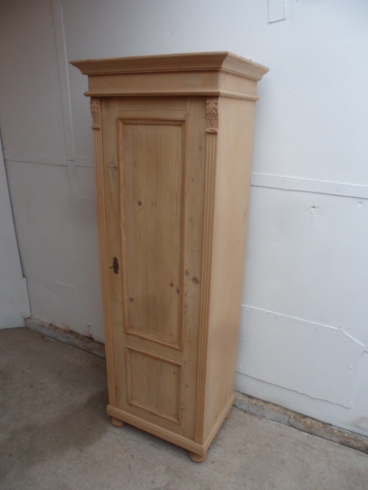 Really Good Old Pine Tall Thin 1 Door Shoe Cupboard to wax / paint