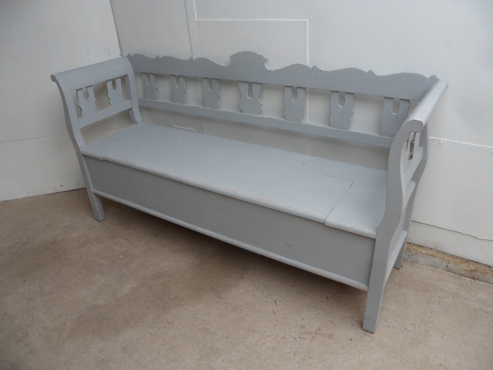 Really Old Pine Battleship Grey Shabby Chic 3 Seater Box Settle / Bench c.1920