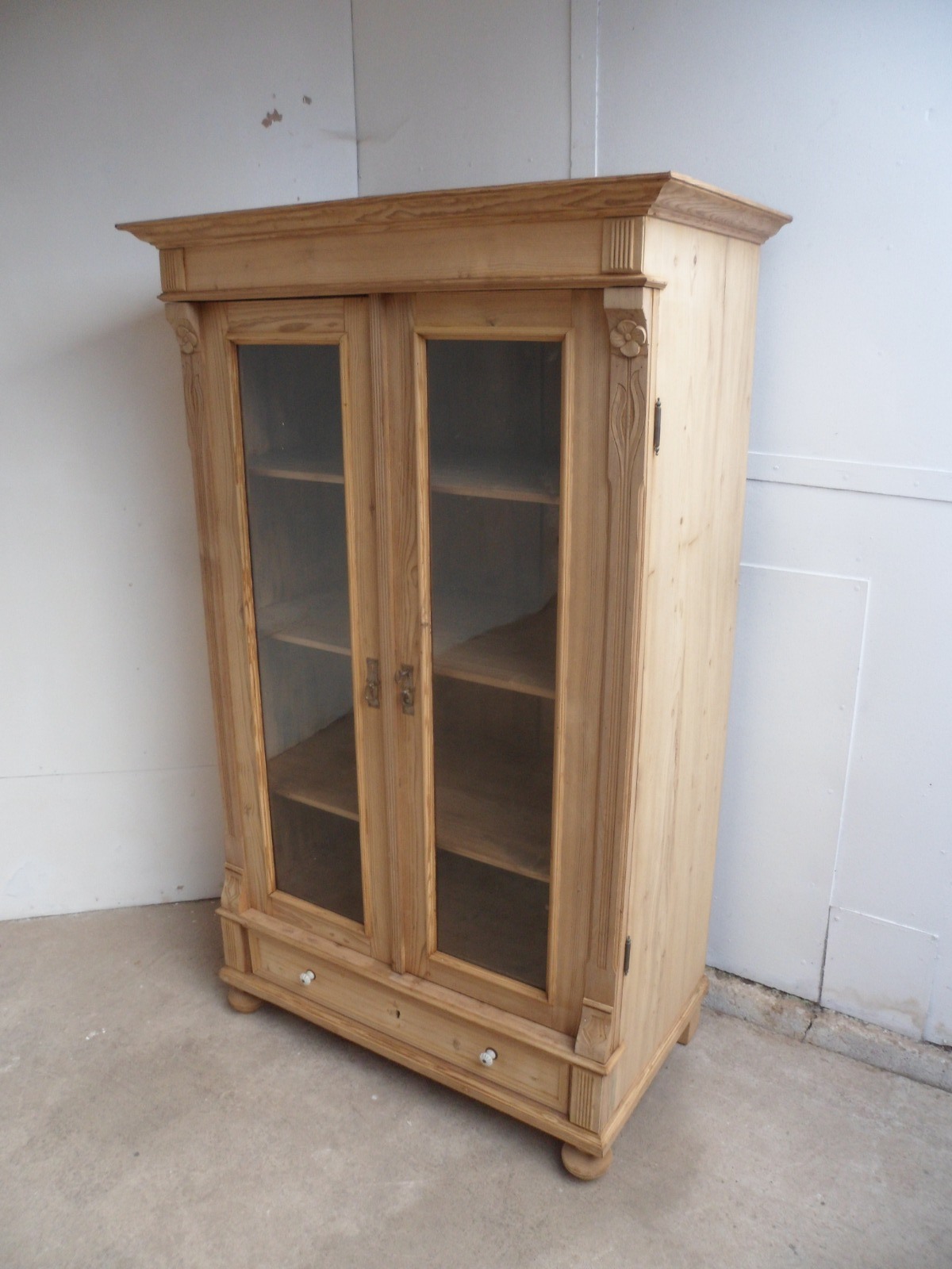 Really Pretty Antique Pine Art Nouveau Display Cabinet to wax / paint