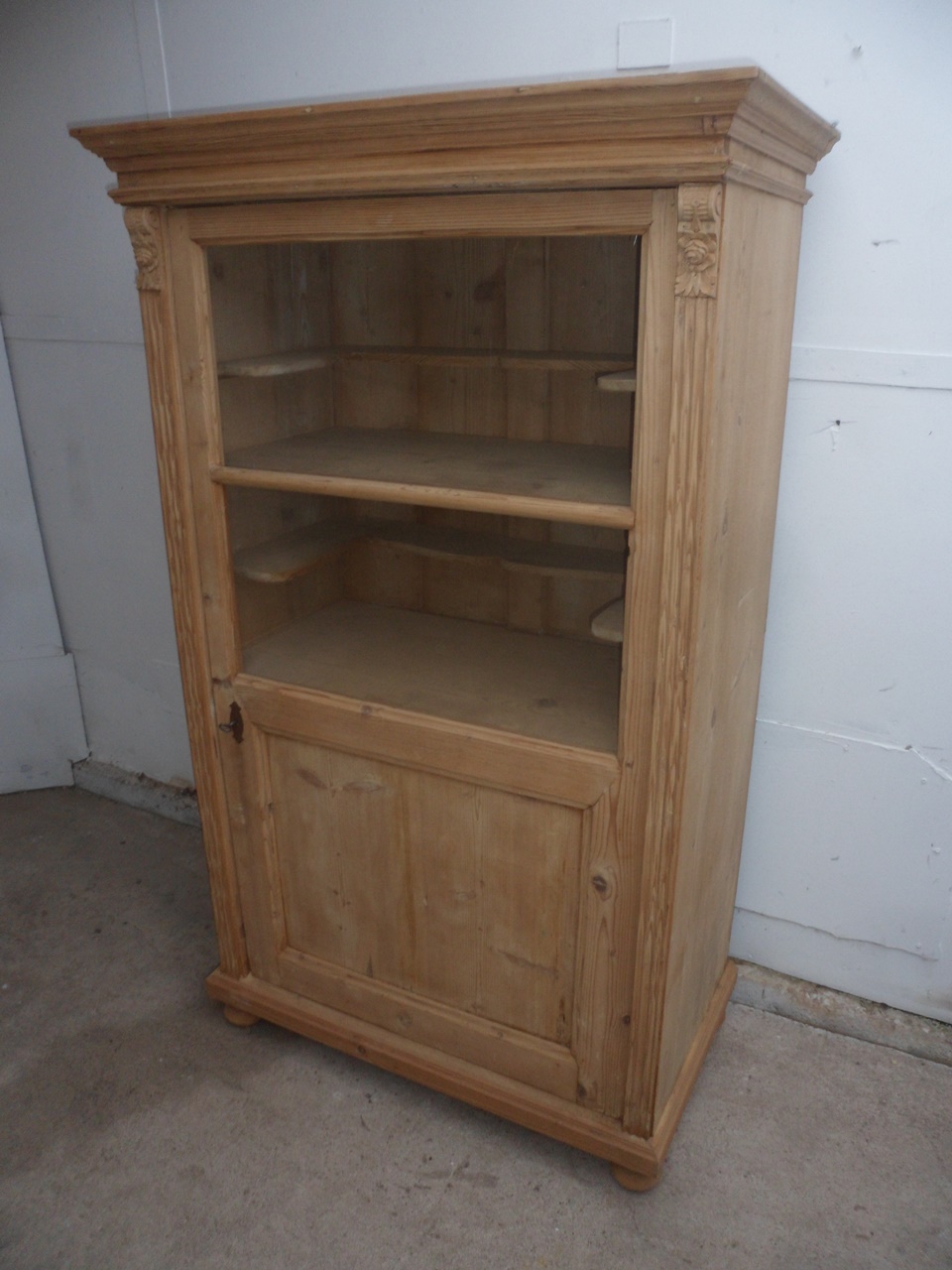 Really Pretty Antique Pine Display Cabinet / Kitchen Dresser