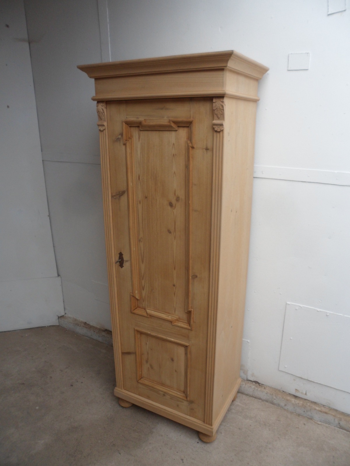 Really Pretty Carved Old Pine 1 Door Storage Cupboard to wax / paint