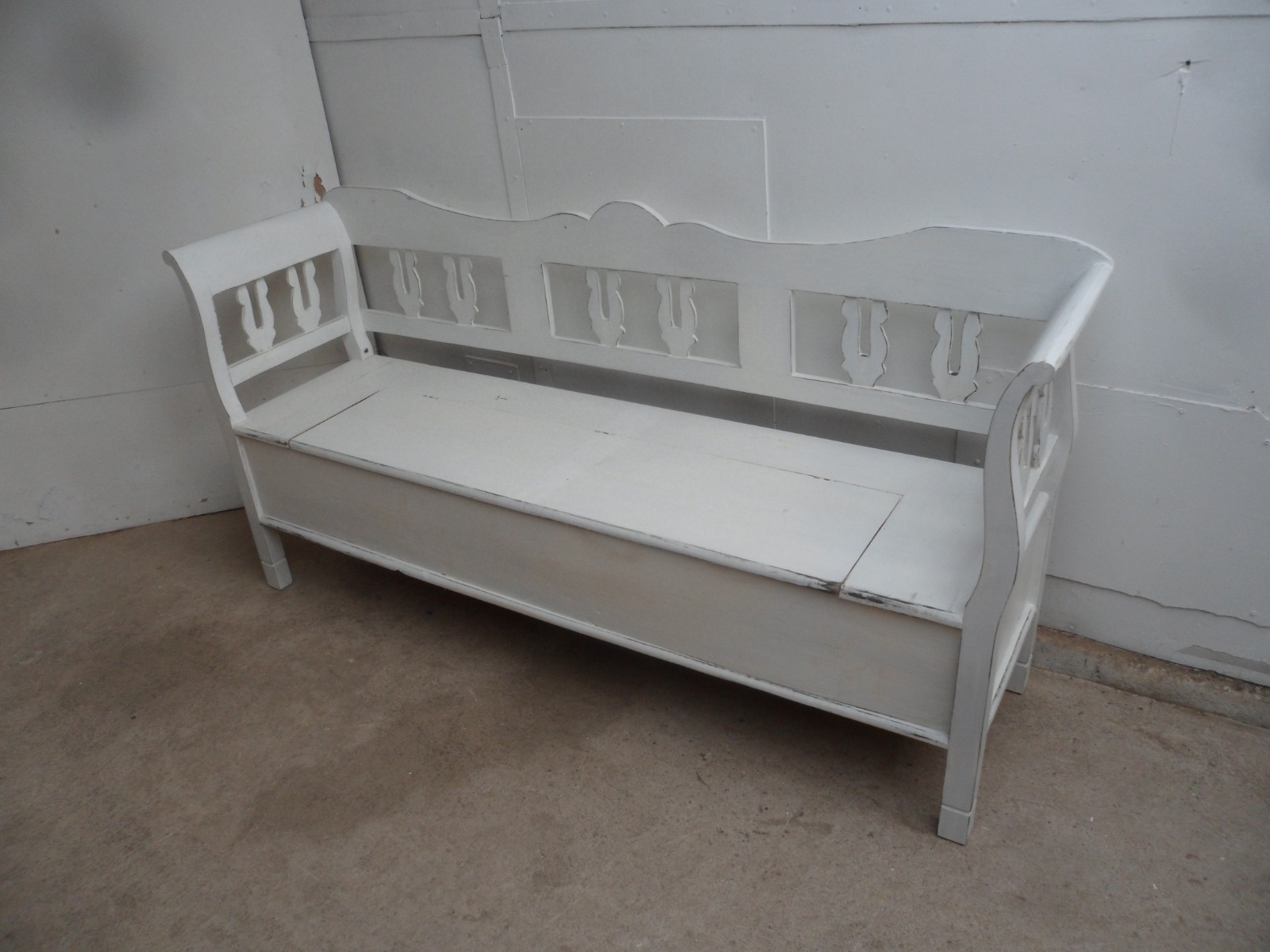 Really Pretty Motif Painted White Old Pine 3 Seater Box Settle / Bench