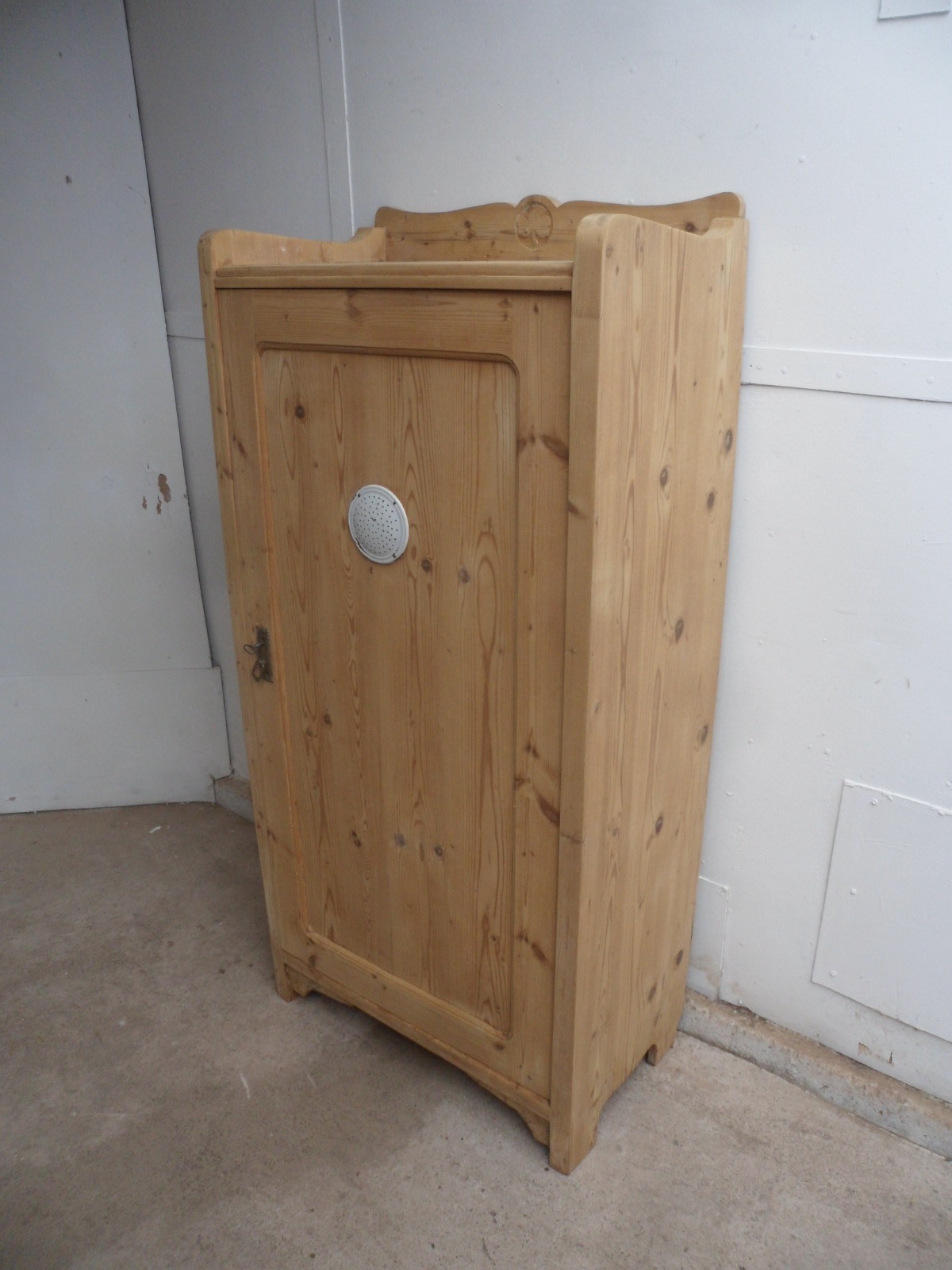 Really Pretty Old Pine 1 Door Metal Vent Storage Cupboard to wax / paint